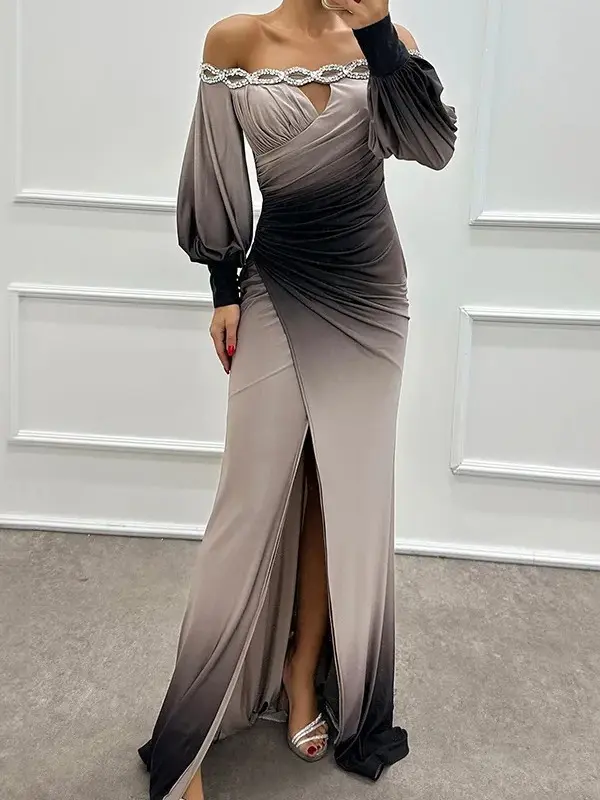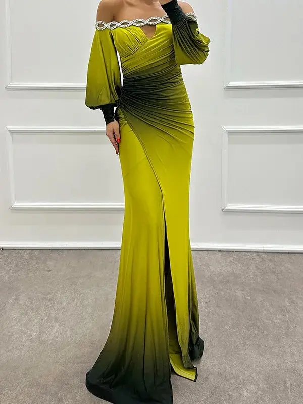 Fashion Sexy One Shoulder Printed Women's Party Dresses Spring And Autumn New Long Sleeved Slim Elegant Ladies Party Dress 2025