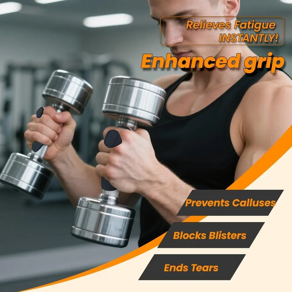·[Non-Slip Ergonomic Grip Support] Lock in your grip and lift heavier! These textured silicone grip pads feature innovative ergonomic ridges that adapt naturally to your hand contours. They provide an unbeatable, anti-slip hold on slippery barbells, dumbbells, and kettlebells, ensuring maximum stability even during your sweatiest gym sessions.