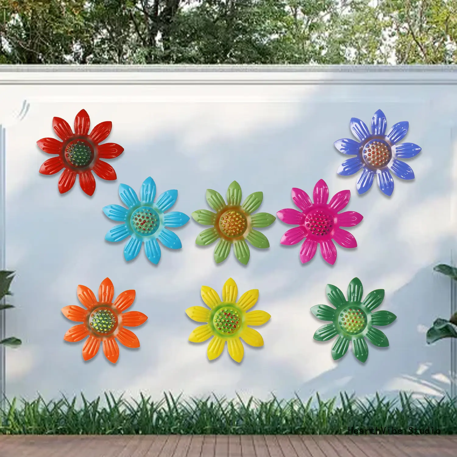 Outdoor Garden & Courtyard Iron Art Wall Hanging — Daisy Motif | Creative Decor & Wall Art for Villas and Landscaping