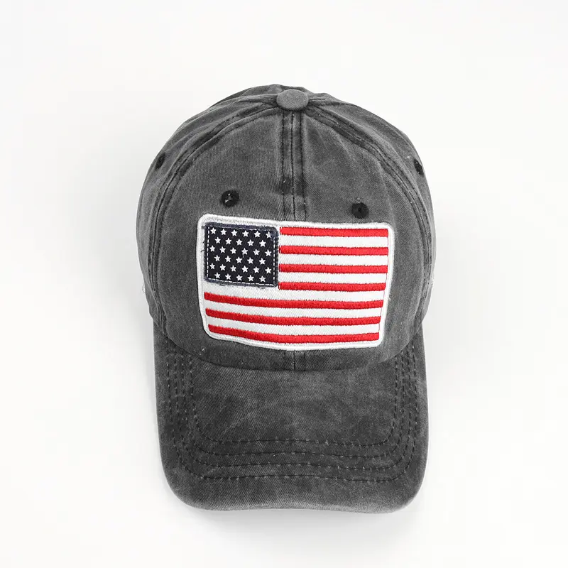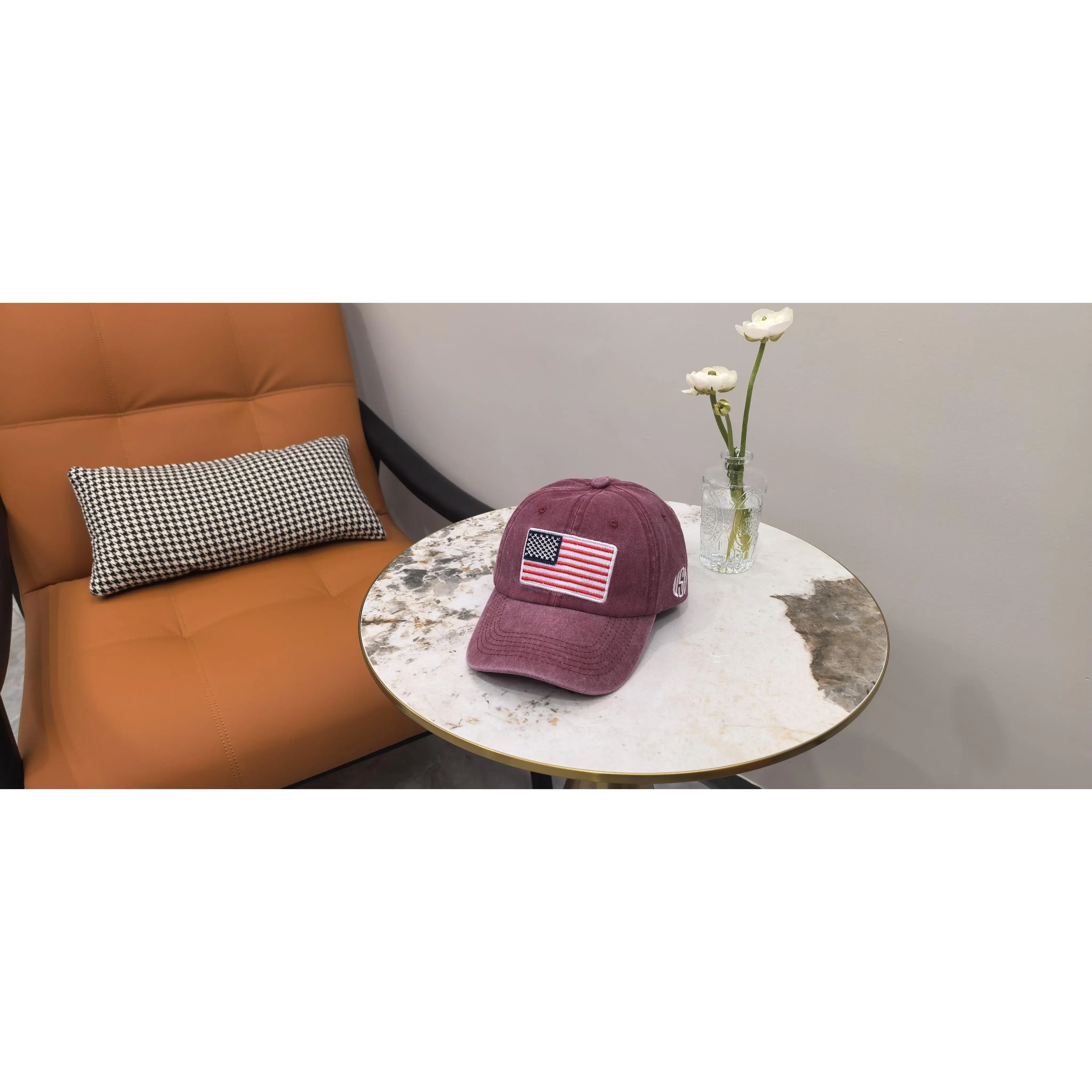 5. Baseball cap with American flag, pure cotton, letter embroidery, washed and distressed, curved brim, trendy new product