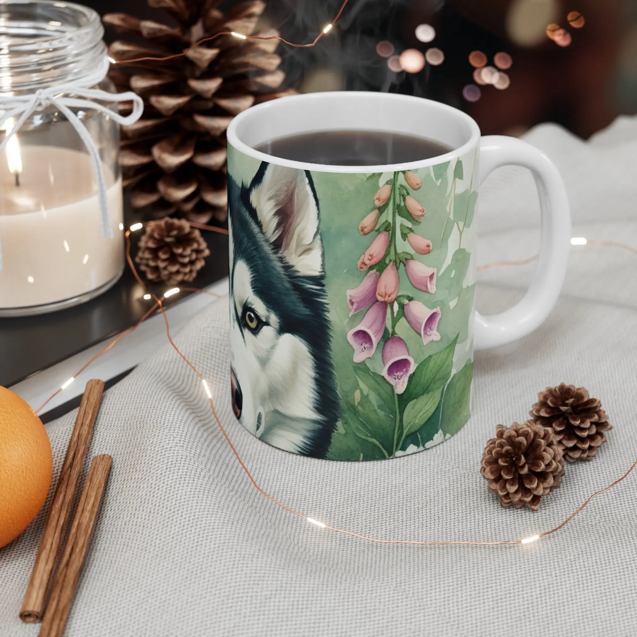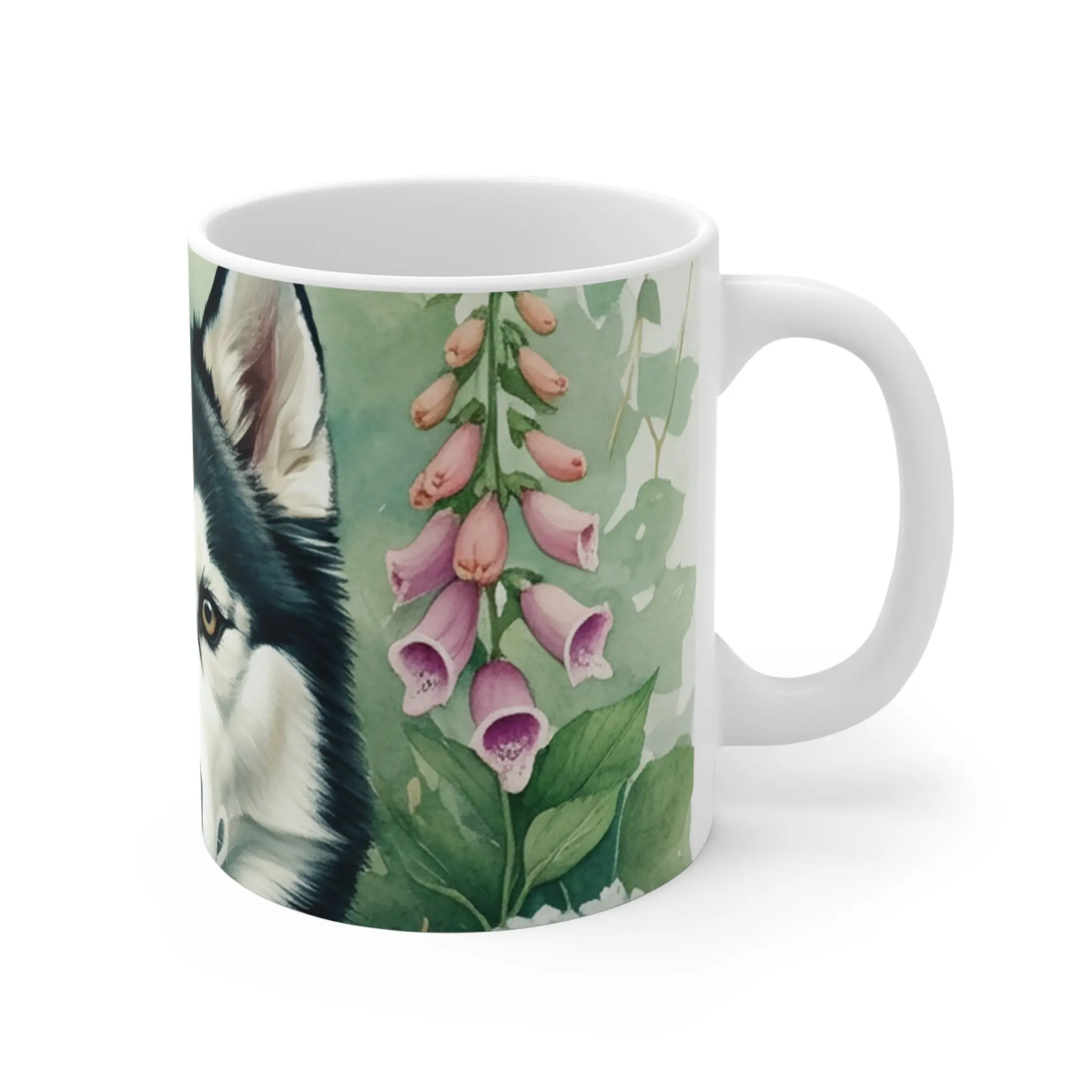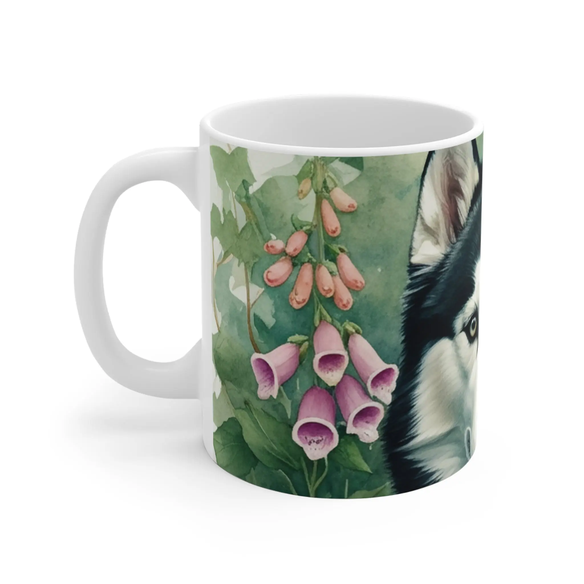 A stunning watercolor botanical portrait of your beloved siberian husky.