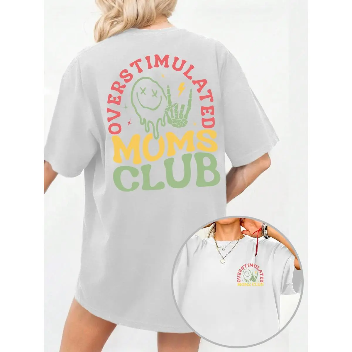 Women's Overstimulated Moms Club Round Neck Graphic Tee, Vintage Trendy Casual Short Sleeve T-shirt for Daily Wear, Ladies Summer Outfit, Top breathable loose fit pure cotton shortsleeve crewneck casual wear mama
