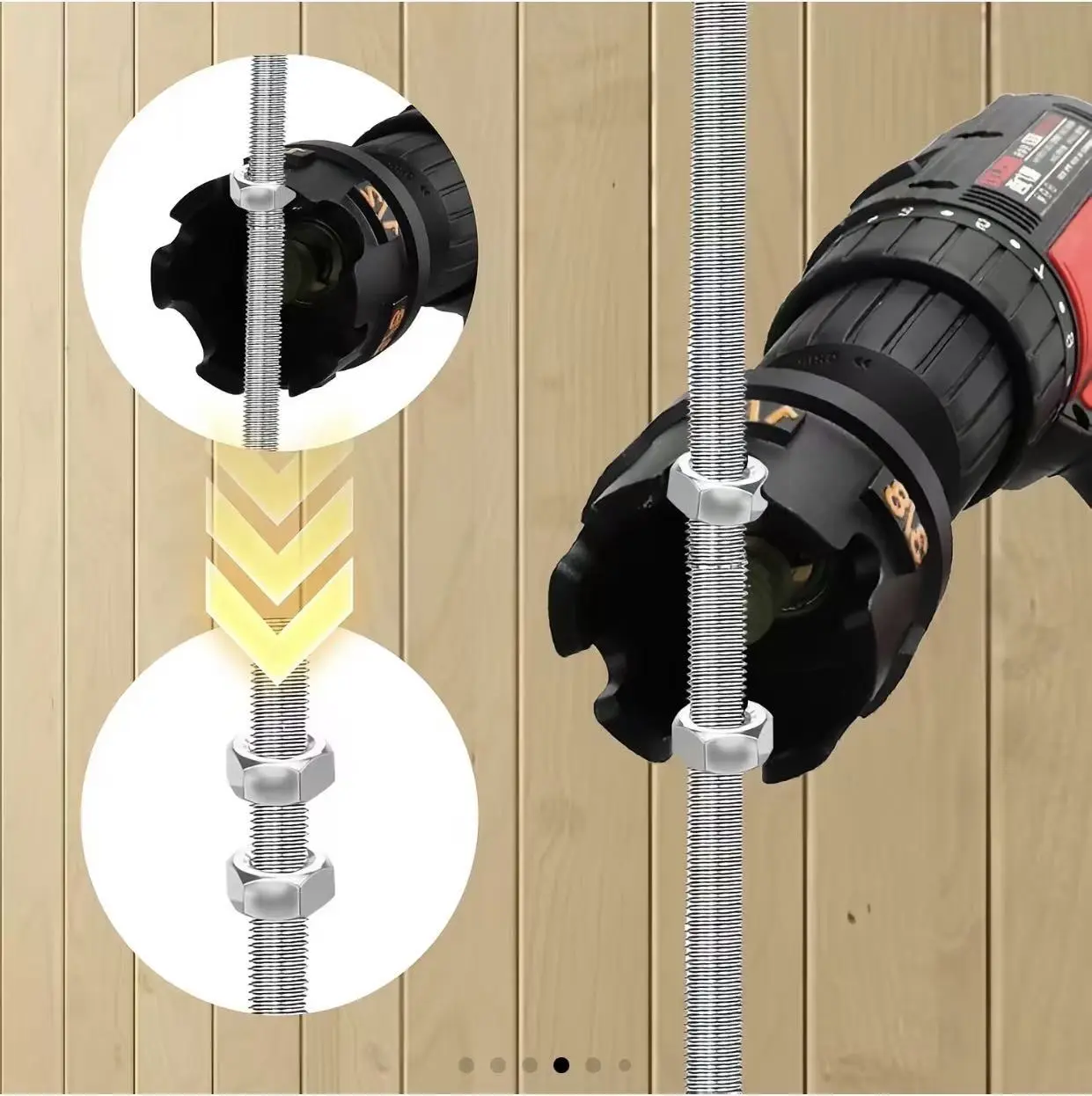This Aluminum Alloy Hex Shank Nut Removal Drill Attachment is designed for quick disassembly of nuts and bolts. It fits 1/4'', 3/8'', and 1/2'' threaded rods, making it versatile for various applications. Ideal for pipe racks and mounting brackets, this tool simplifies maintenance tasks.