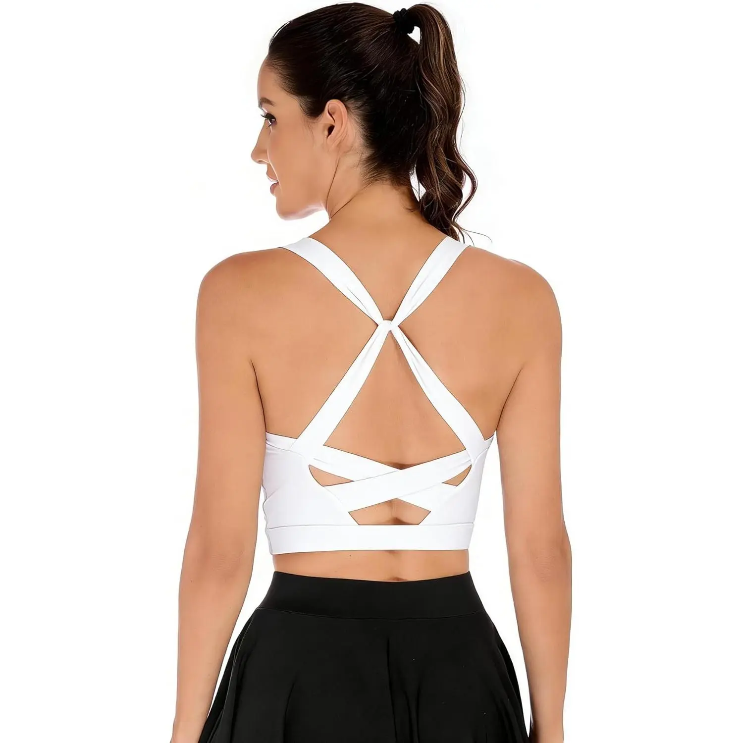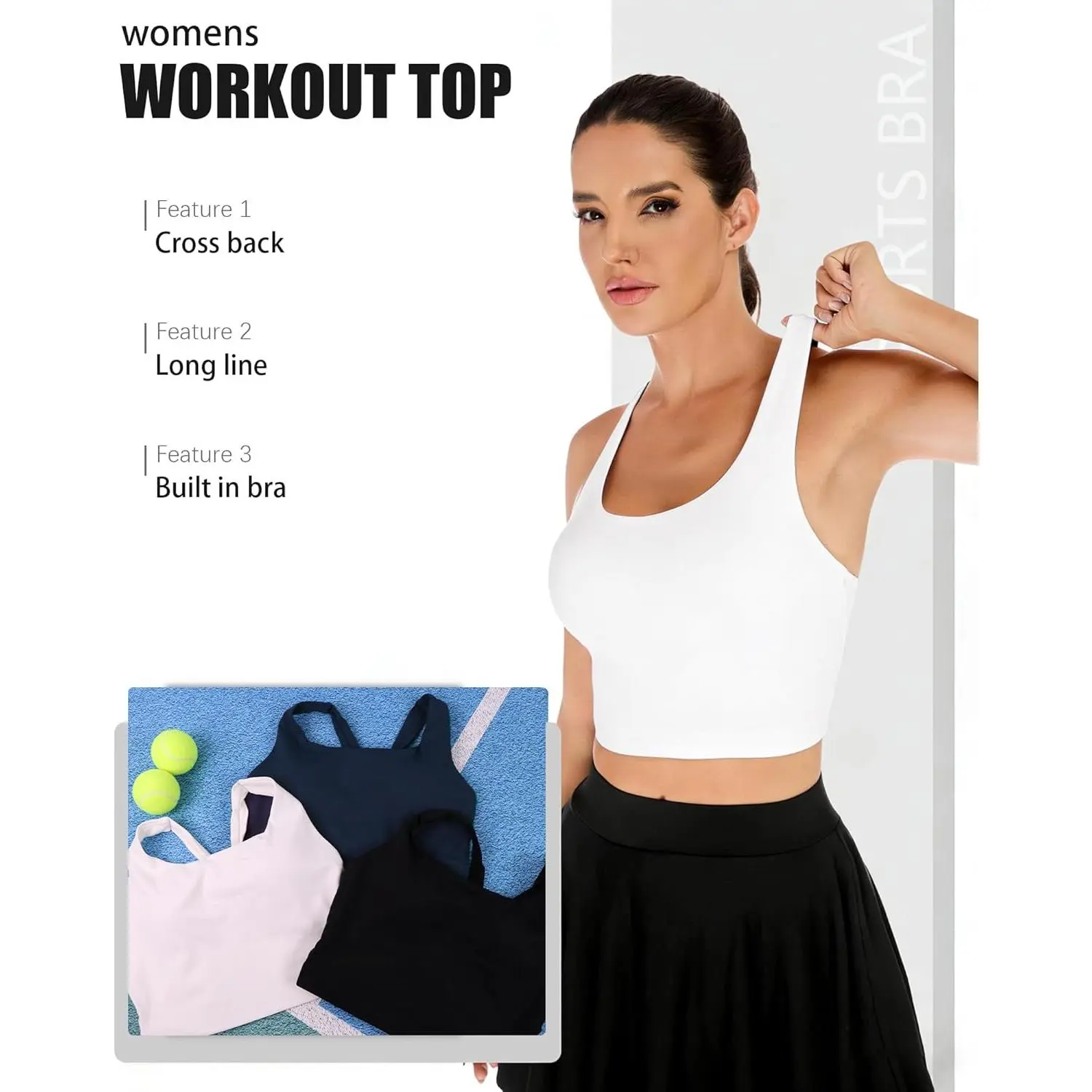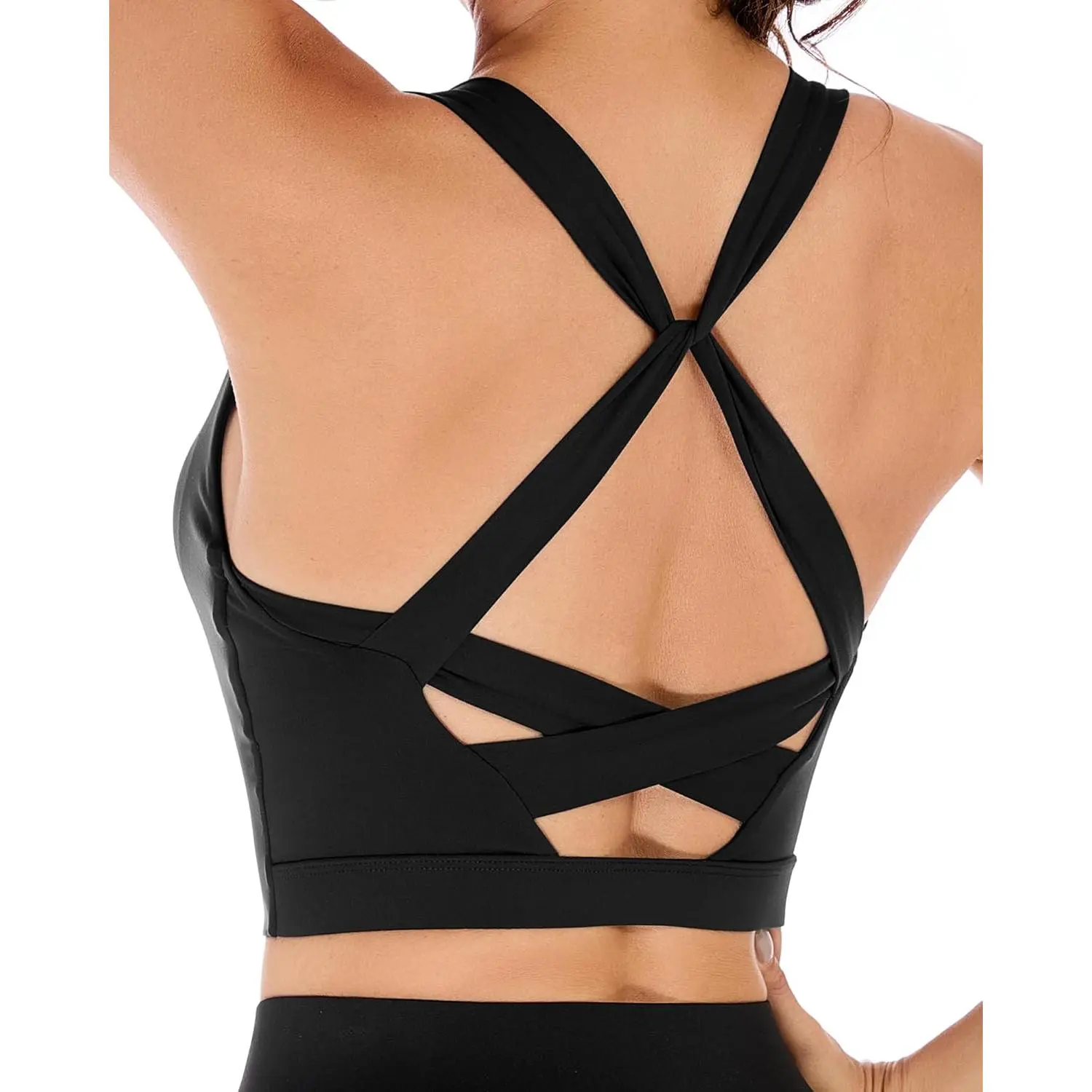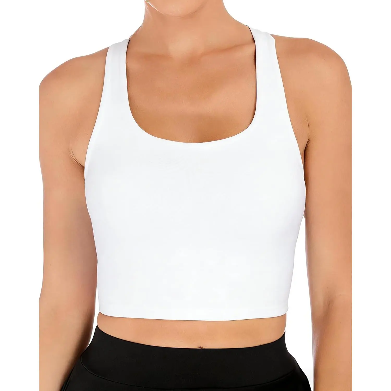 Longline Sports Bras for Women Cross Back Workout Tops with Built in Bra Yoga Bra Athletic Crop Tank Top Gym Fitness