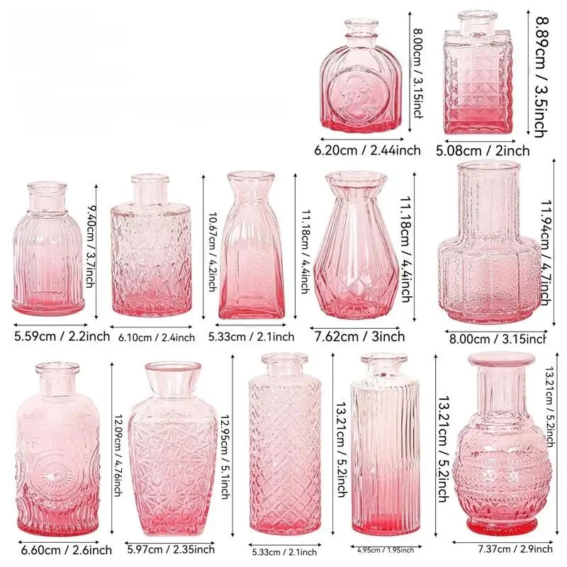12pcs💐Glass Bud Vase Set As Wedding Centerpieces for Tables,Small Minimalist Vases for Flowers, Vintage Rustic Home Decor for Table Centerpiece Wedding Party, Birthday Party,Anniversary,Modern Clear Aromatherapy Bottle for Living Room Bedroom