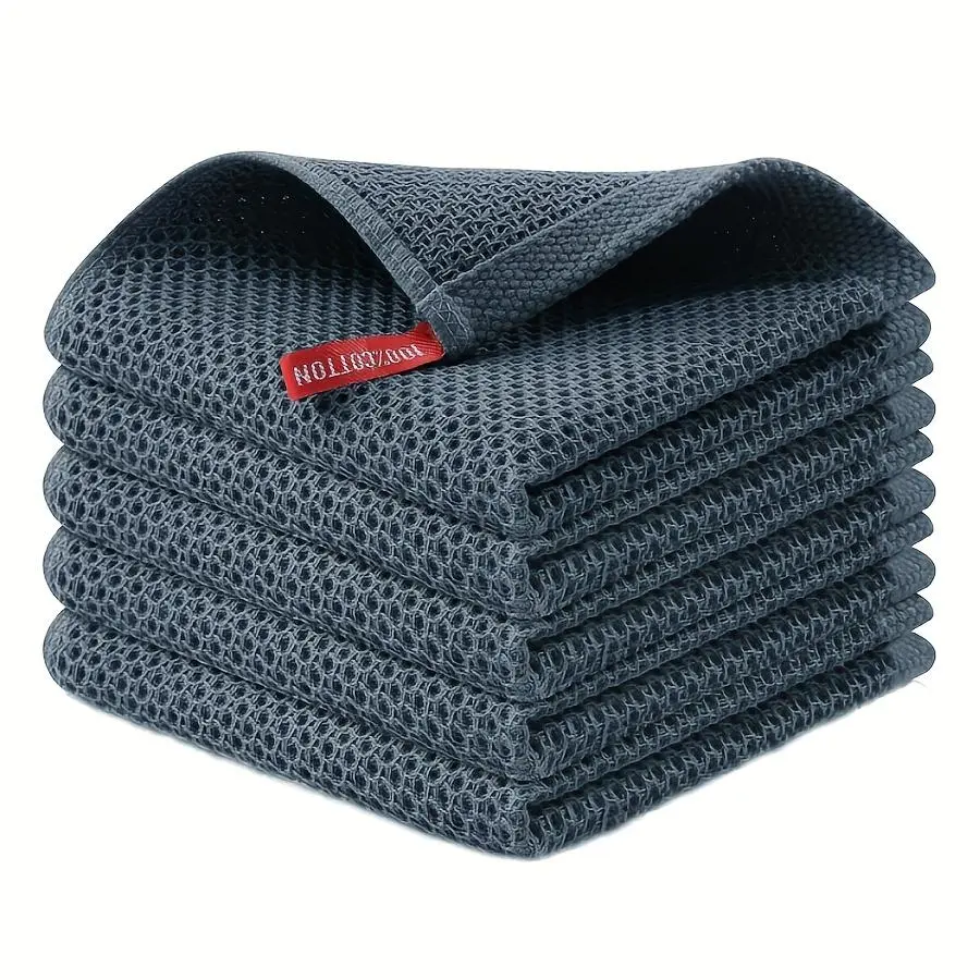5-Pack 30cm x 30cm Dishcloths. 100% Cotton Waffle Weave Cleaning Cloths, Suitable for Household Kitchen Use, Reusable Cleaning Cloth Set