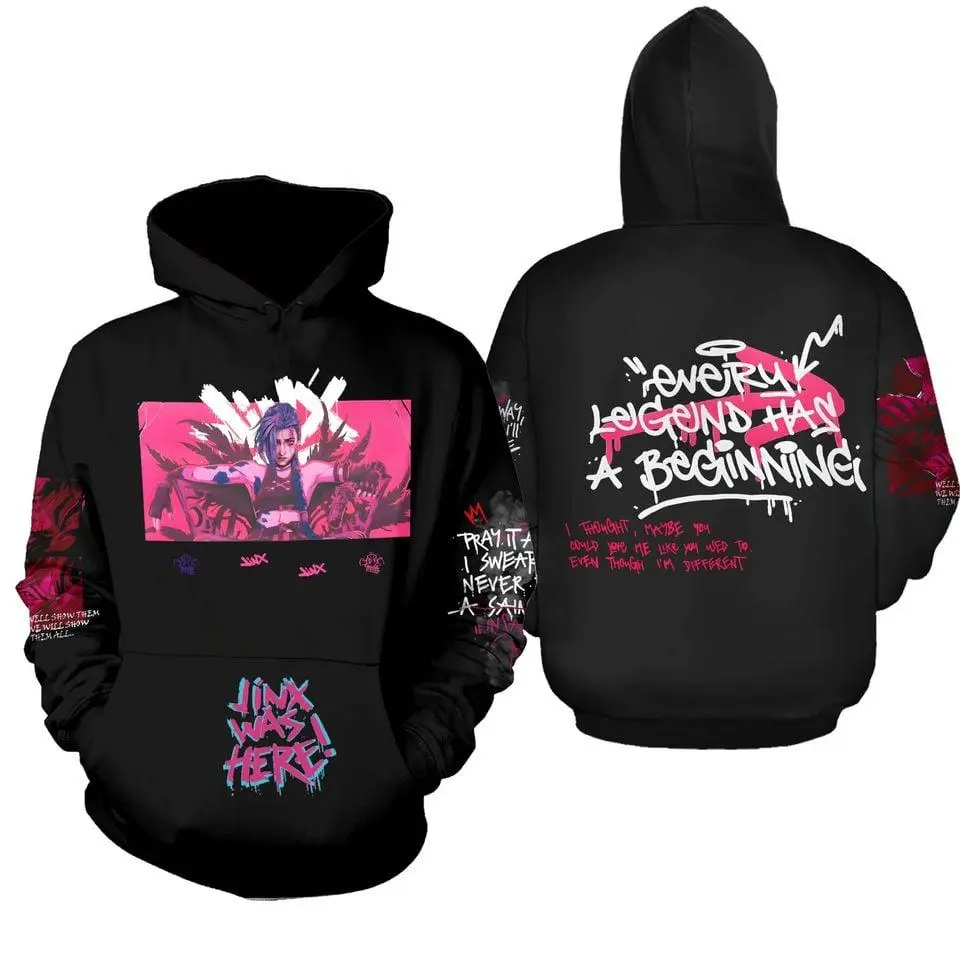 Arcane Jinx Oversize Hoodie, League of Legends Gamer Cosplay Pullover, Hextech Streetwear Sweatshirt, Best Gift for Netflix Arcane Fans 2026