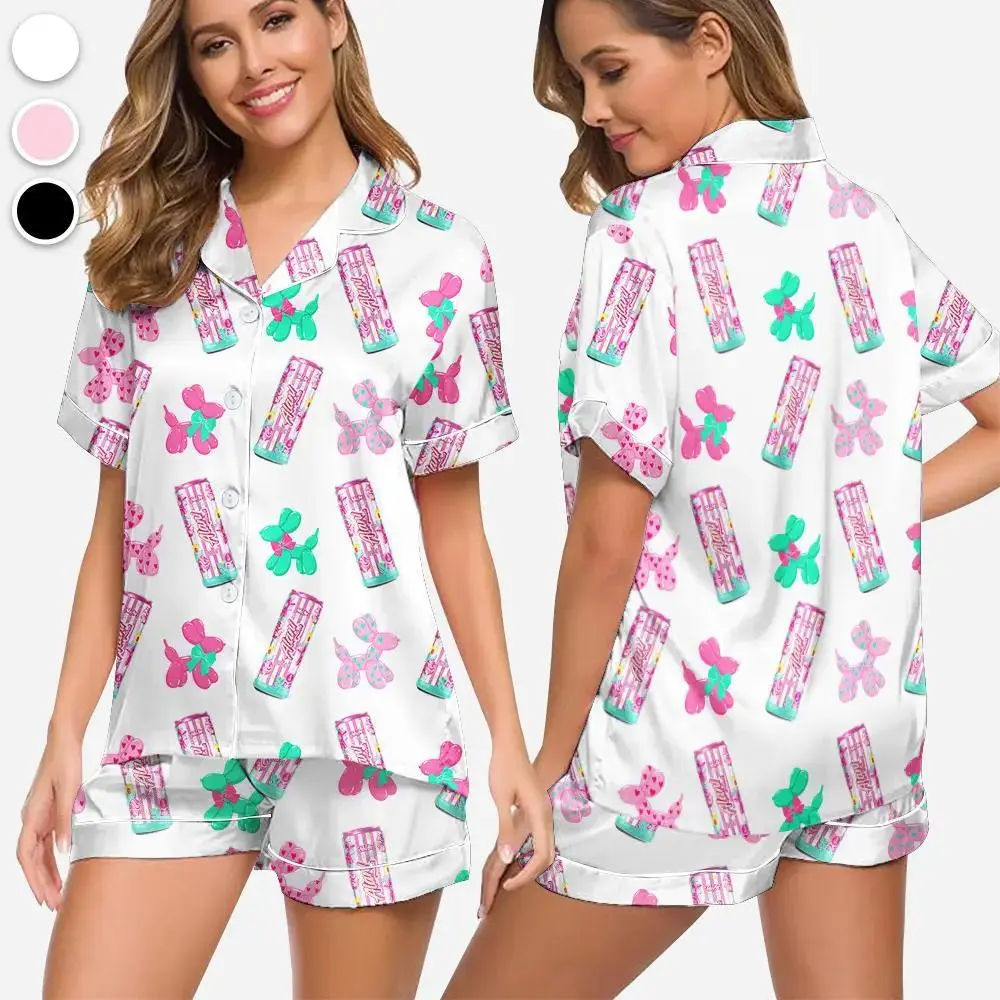 Alani Cotton Candy Satin Pajama Set Women, Sweet Drink Inspired Sleepwear, Short Sleeve Button Top and Shorts, Cute Lounge Gift Idea