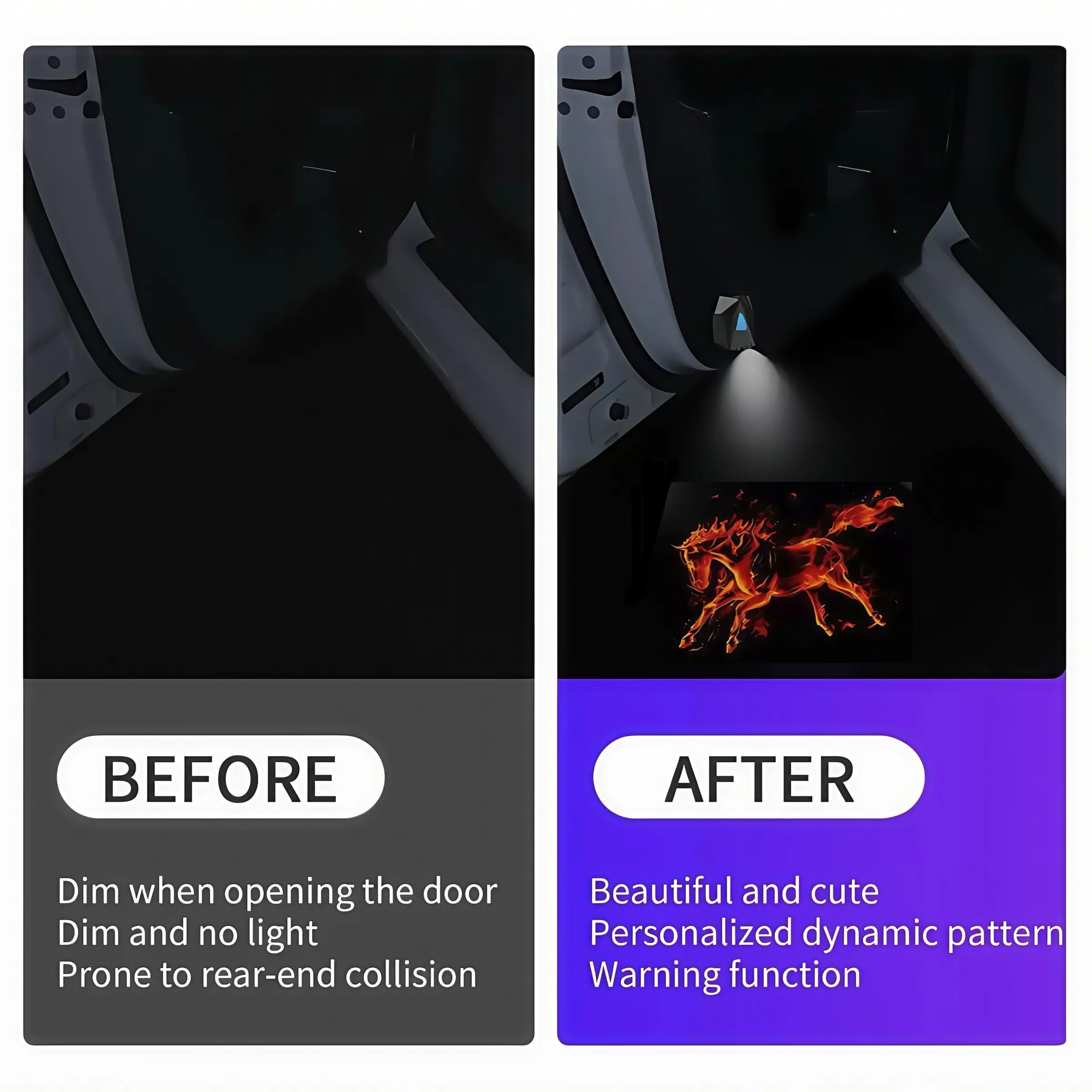 【Dynamic Car Door Lights】Transform every door into a showstopper with our car door lights! Dual projectors seamlessly shift between two patterns, delivering a display to adjust the speed. Whether you prefer a dynamic light show or a static statement, our car welcome door light is the ultimate style upgrade for car enthusiasts of all ages.