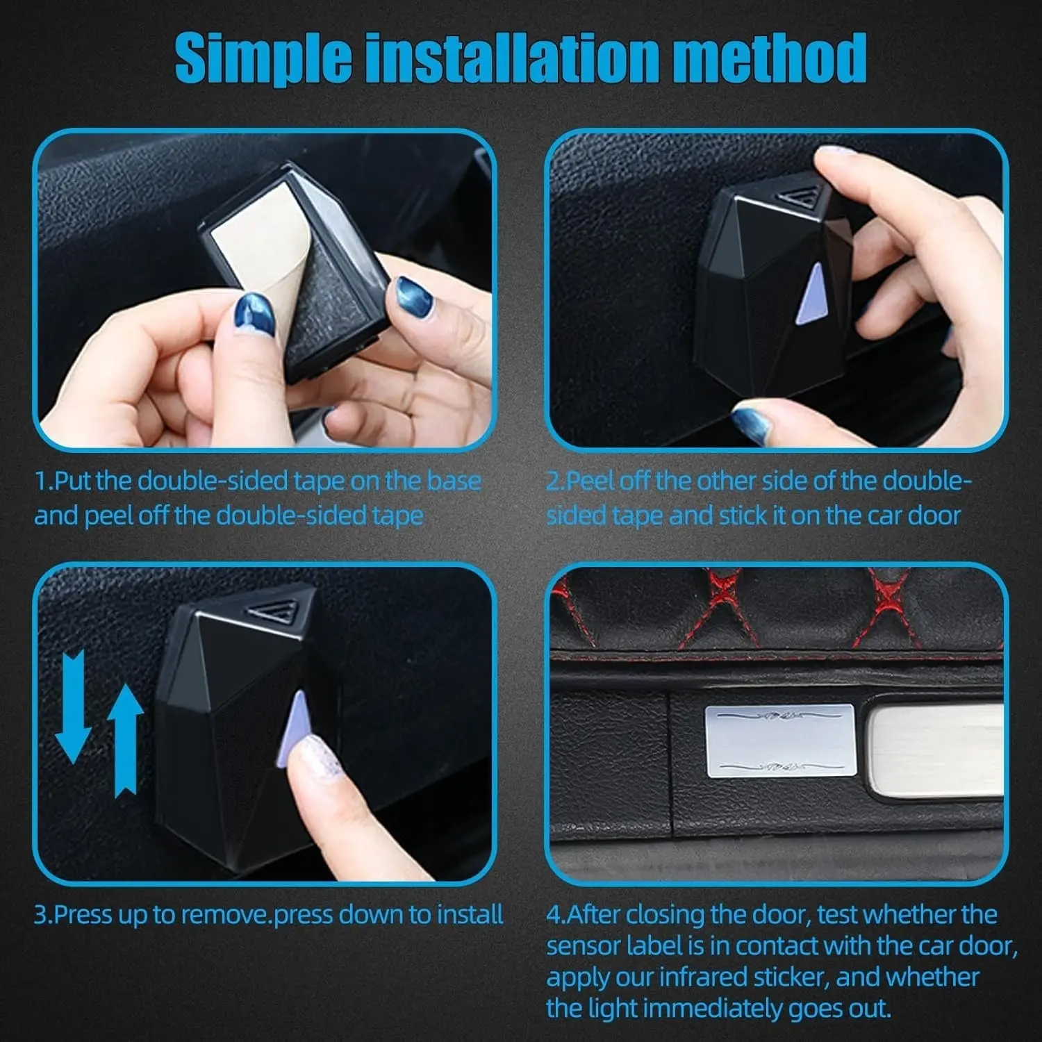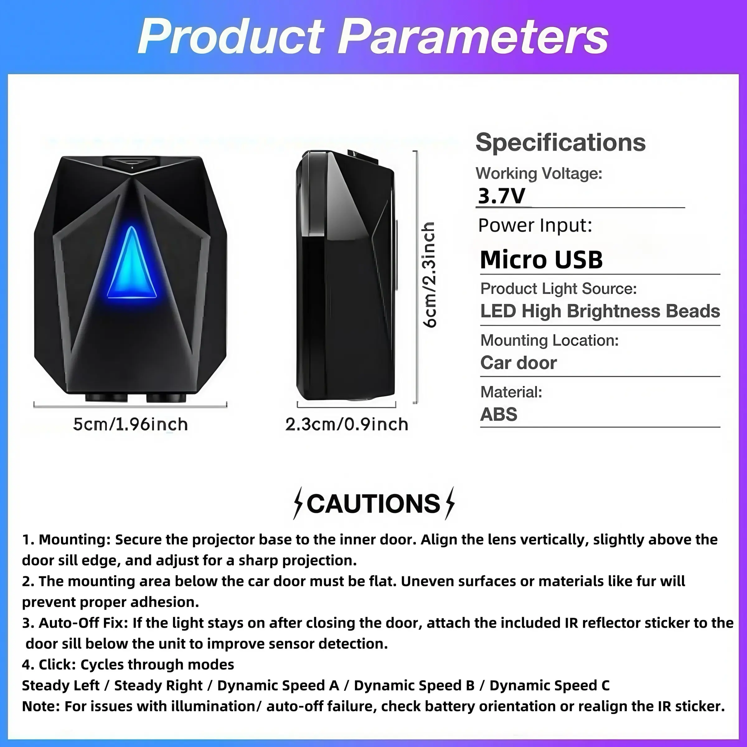 【Smart Infrared Sensor】Smarter lighting for a safer, sleeker experience. The light stays off during daylight and auto-activates at night, projecting only when needed. When an obstacle is detected within 4-10 cm, the light shuts off instantly. This design not only enhances the visual appeal of your car but also provides a practical door warning function, making it a perfect blend of style and safety.