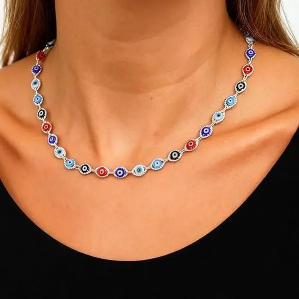 Evil Eye Necklace: Evil eye symbolizes good luck and spiritual protection. One of the most popular forms of protection is to wear the evil eye talisman, it's a simple form to protect you from misfortune. Wear this necklace to our neck can bring you success and good luck.