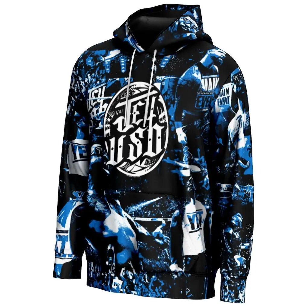 5. Jey Uso Crowd Black Hoodie, Yeet Nation Entrance Graphic, High Energy Wrestling Style, Main Event Streetwear Outfit, Trendy Fan Pullover Sweatshirt