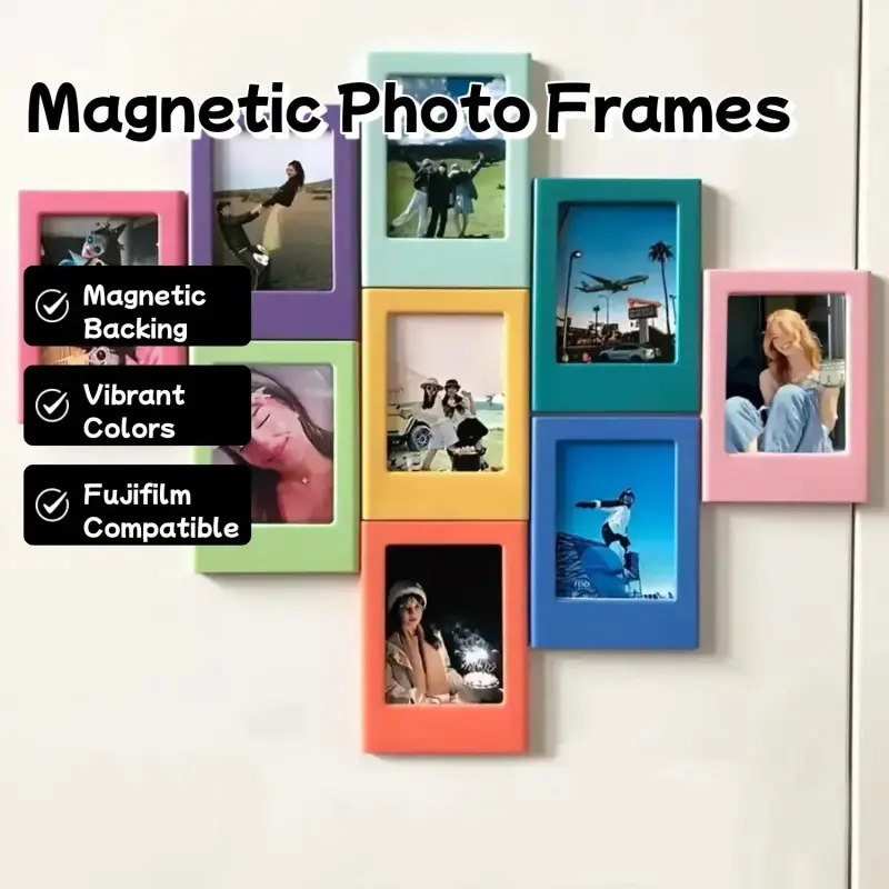 10PCS 3-Inch Magnetic Fridge Frames - Random Color Fujifilm Photo Holders, Retro Durable Frame with Smooth Edge, Home/Office Decor, Black Friday Deal: Fridge Magnet Photo Displays, Ideal Holiday/Birthday Gift for Photographers, Picture Frame Set