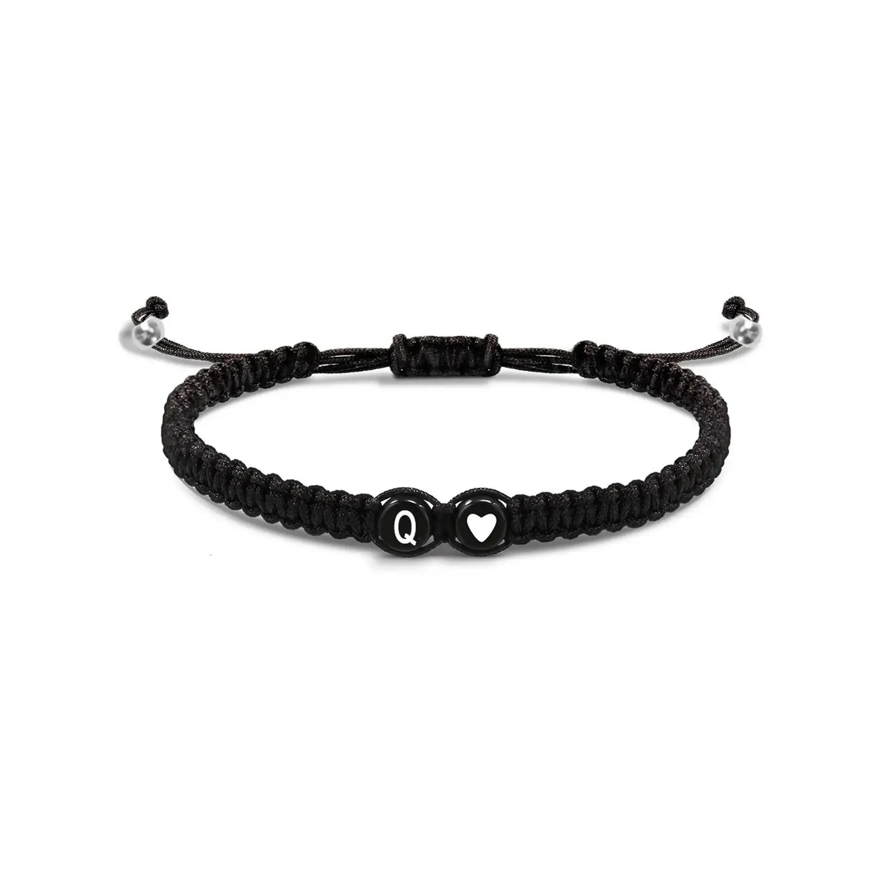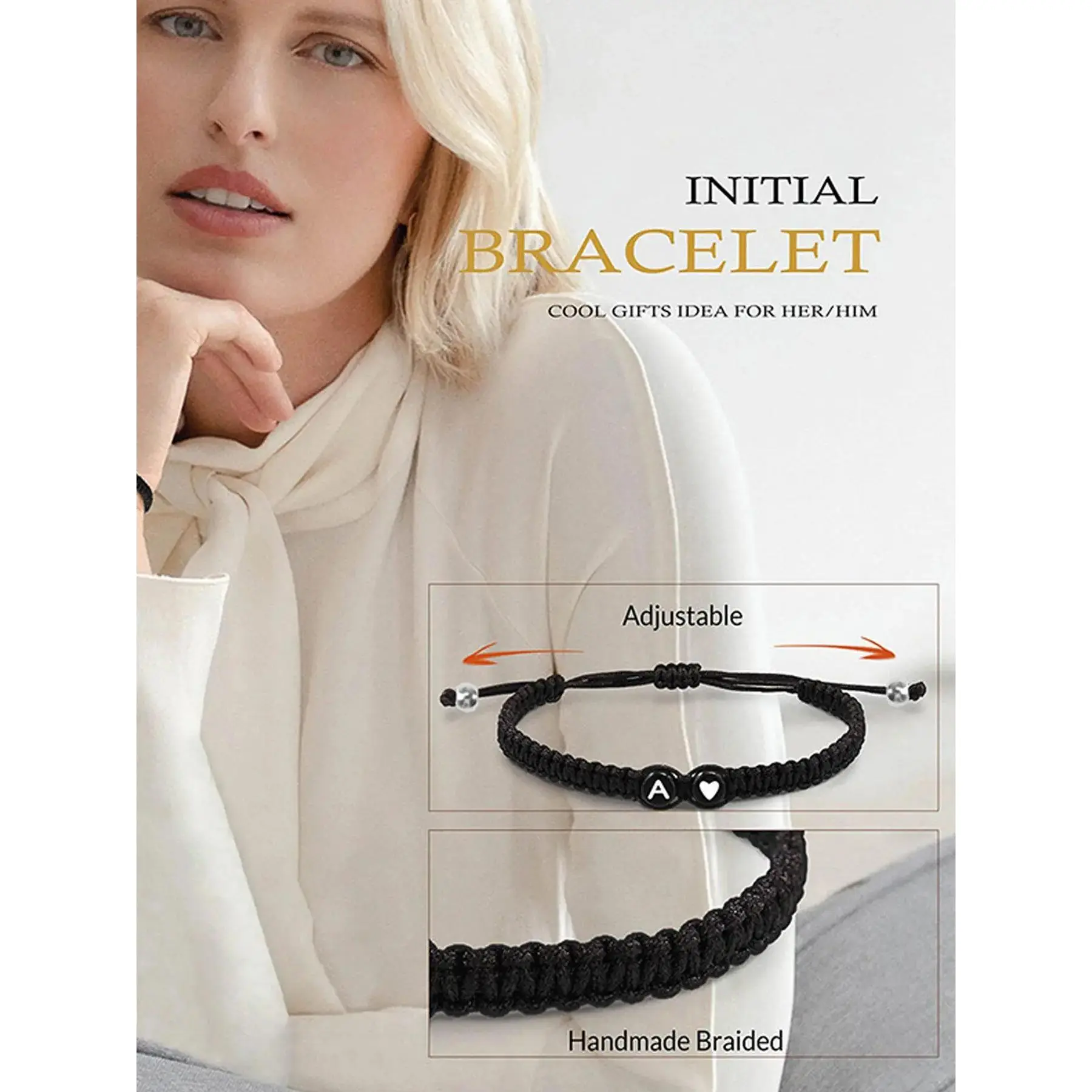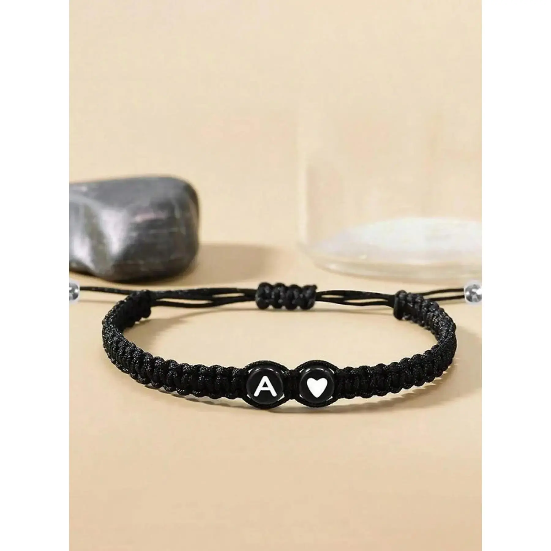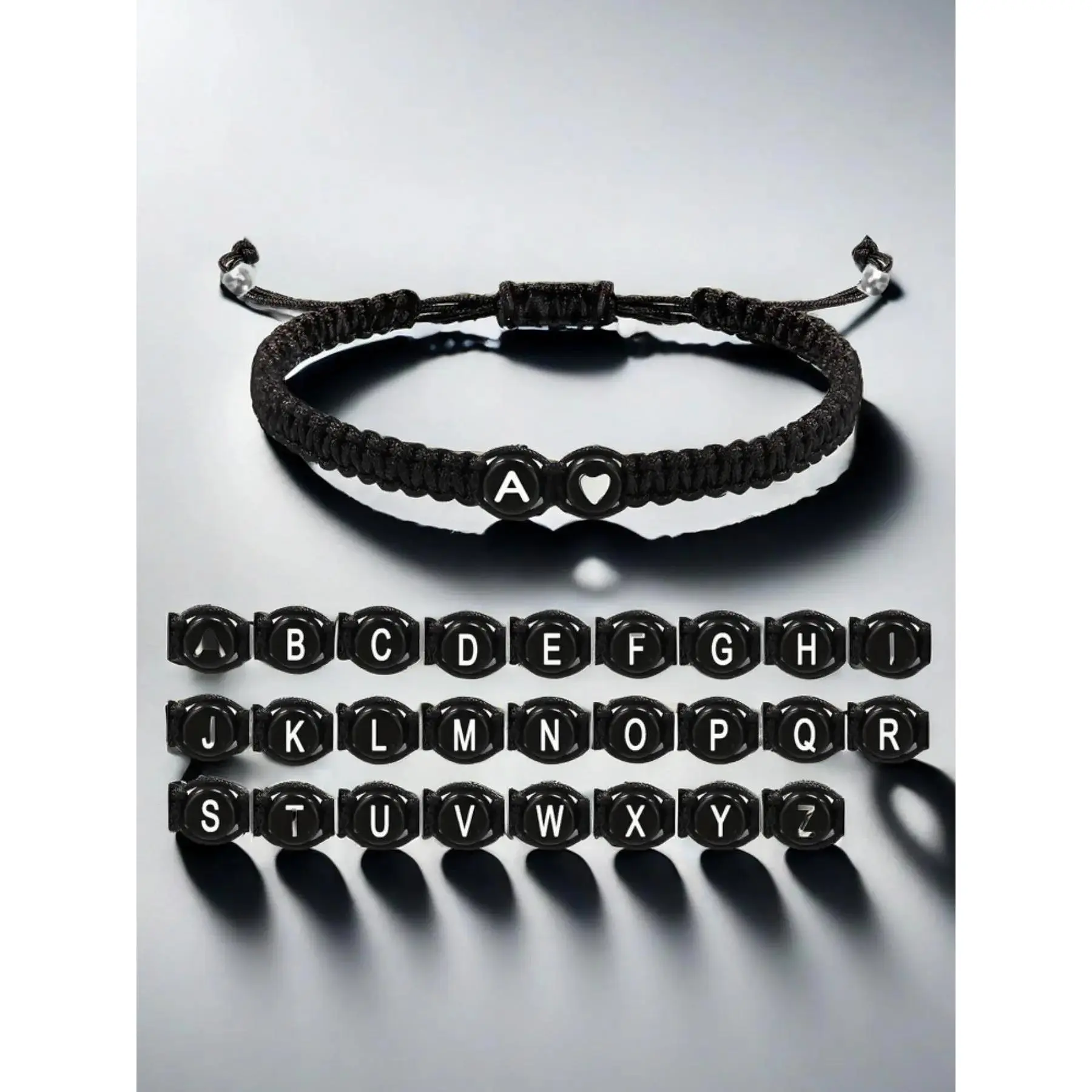 Black and White Heart-shaped 26-letter Braided Hand Rope, Personalized Style Letter Link Bracelet Suitable for Daily Wear Lovers & Girlfriends