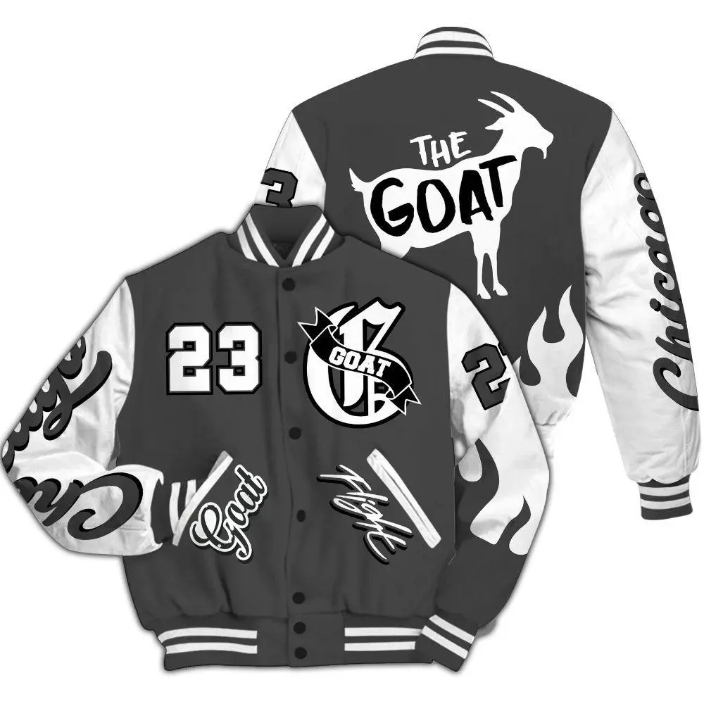 5. GOAT Flight Varsity Jacket Unisex, Basketball Graphic Streetwear, All Over Print Bomber Coat, Trendy Statement Outfit Gift Idea