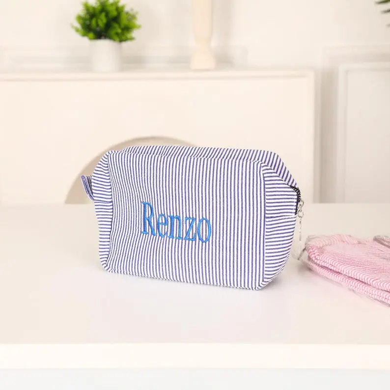 Monogrammed Seersucker Toiletry Bag: Custom Bridesmaid Makeup Bag
