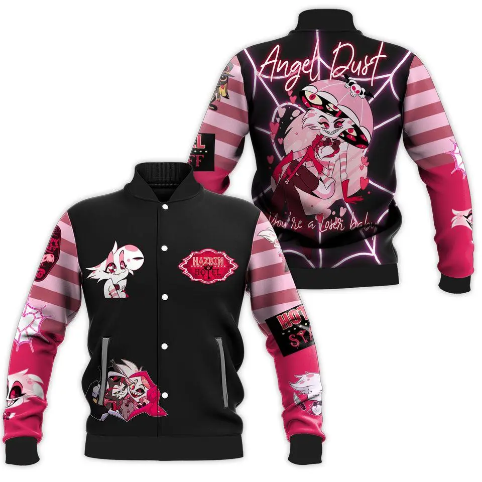 Angel Dust Varsity Jacket Unisex, Anime Inspired Streetwear, Demon Graphic Bomber Coat, Trendy Fan Gift Idea