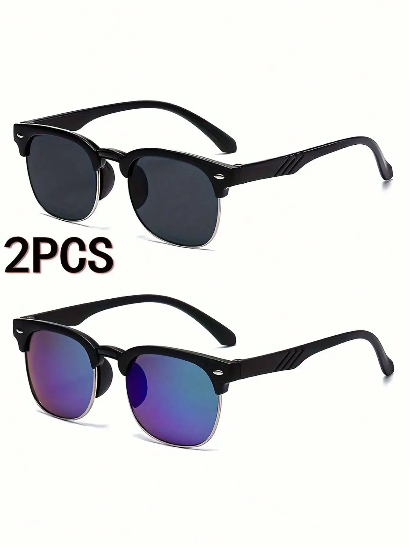 Classic Teenager Glasses Set of 2, Colorful Lenses, Casual Versatile, Suitable for Beach and Parties, Unisex Kids Eyewear