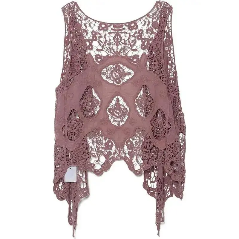 Women’s Sleeveless Lace Asymmetrical Top Loose Fit Boho Tunic Blouse