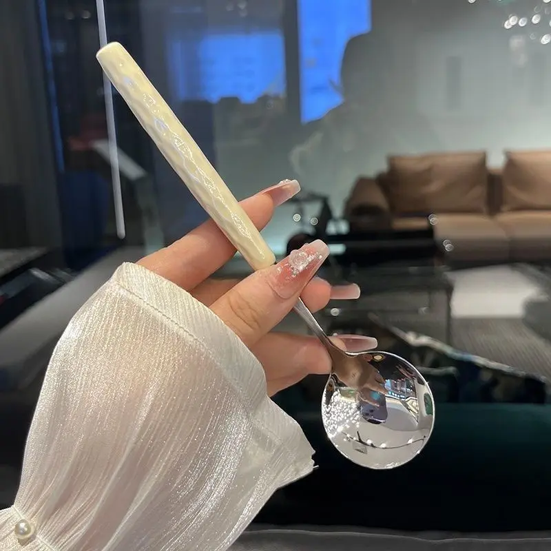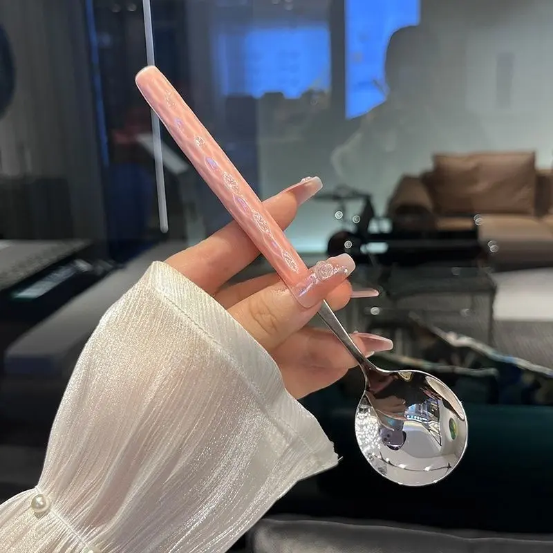 Girly Kitchenware,4pcs Durable Stainless Steel Spoon with Plastic Handle,Cute Aesthetic Spoon Set, Colorful Utensils Perfect for Girls, Lunch Boxes & Everyday Meals