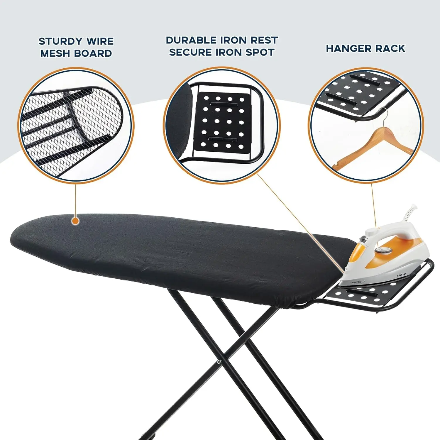 Build to Last: The finer welded steel frame makes the heavy duty iron board full size very sturdy and less wobbly. Also, the metal mesh plate is flat and the board is thick and more stable.