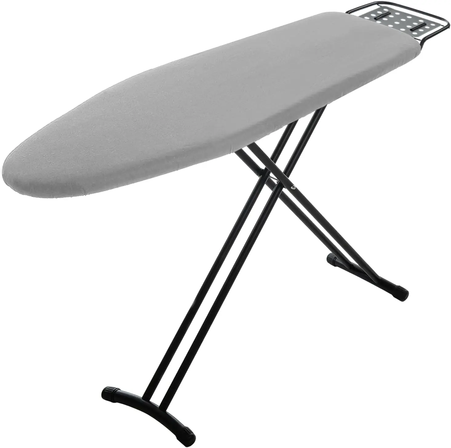 Iron Rest: The ironing stand comes with a robust iron rest area to hold your hot iron securely while in use. The steel T legs construction are sturdy and durable with non-slip silicone caps.