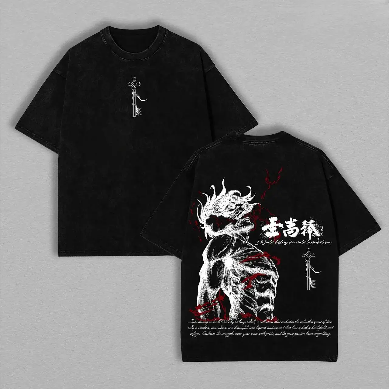 Eren Yeager Tee – Attack on Titan Vintage Washed Oversize T-Shirt