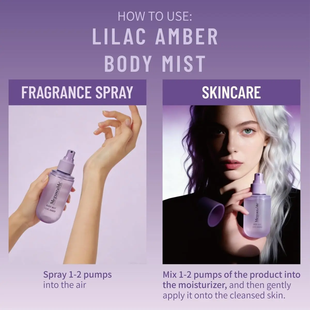 Lilac Amber Body Spray for Women, Long Lasting Floral Woody Fragrance Mist, Paraben & Phthalate Free, Gentle Elegant Daily Perfume, Skin Safe Feminine Body Scent, Travel Size 3.38 fl oz (100ml)