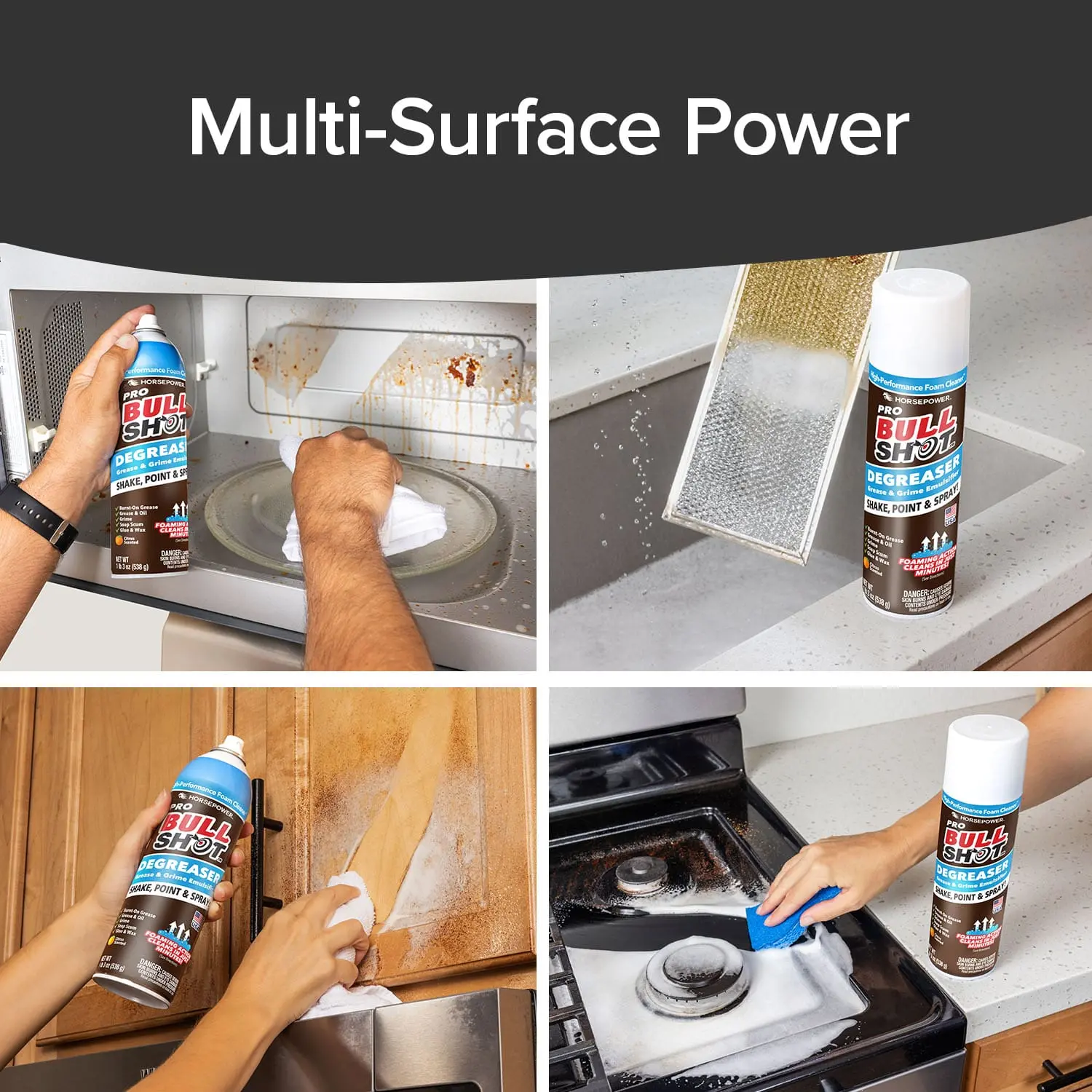 Struggling to remove stubborn grease stains, burnt-on food, and sticky residues? The endless scrubbing, wasted time, and frustration can leave you feeling defeated, while dirt and grime continue to build up on your appliances, tools, and surfaces. Say goodbye to the hassle with Horsepower Bull Shot Grease, the ultimate all-in-one degreaser designed to help dissolve even the toughest messes fast—no elbow grease required. Simply shake, spray, wait, then wipe to reveal spotless, residue-free results that restore surfaces to their original shine. Whether you’re cleaning your kitchen or garage, this USA-made powerhouse streamlines your cleaning routine and delivers a sparkling clean every time!