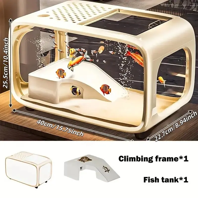 All-in-one turtle and lizard enclosure with lid, minimalist design suitable for living room decoration. Stable base with shatter-resistant construction, rectangular aquarium large-capacity tank for home use,ideal for both freshwater and saltwater breeding