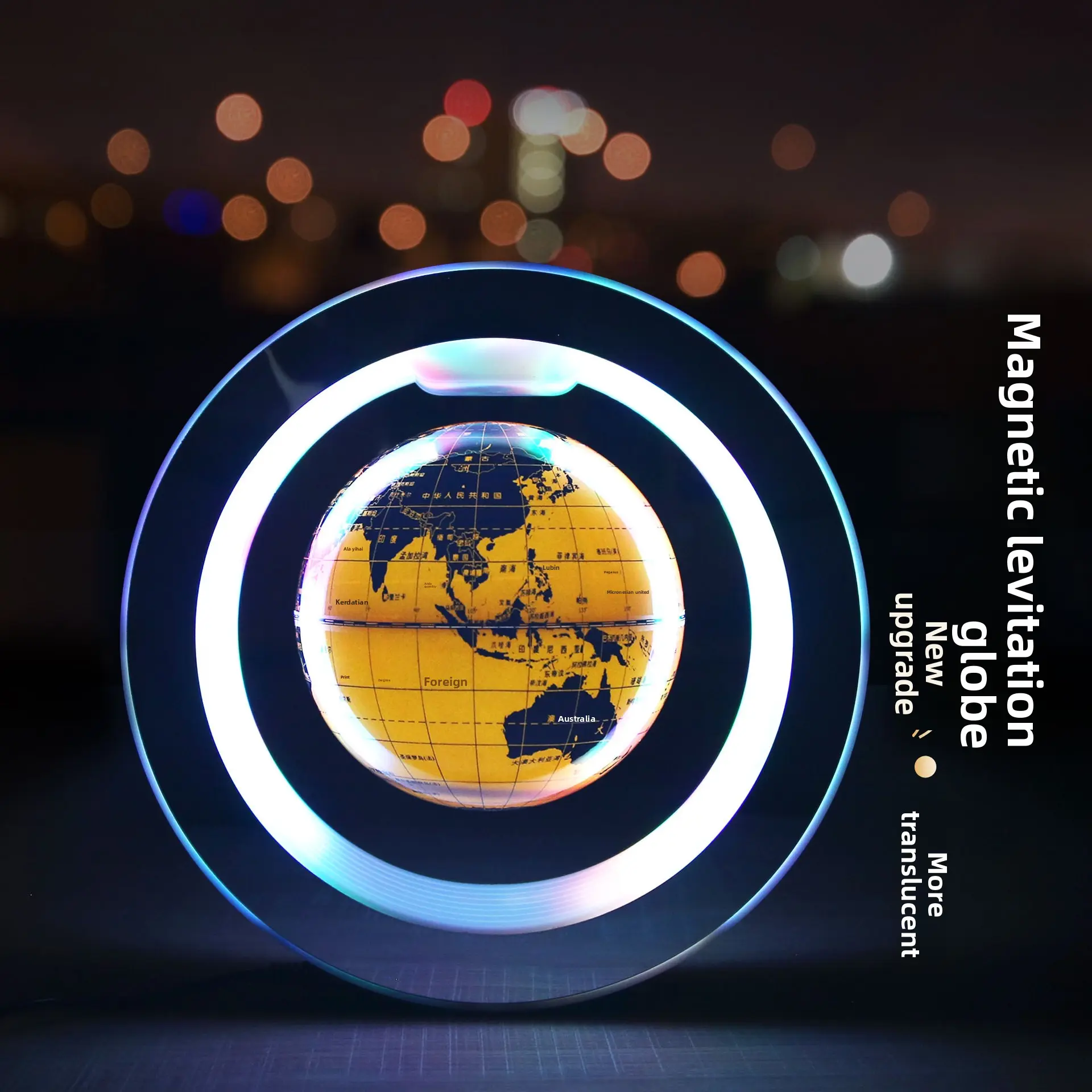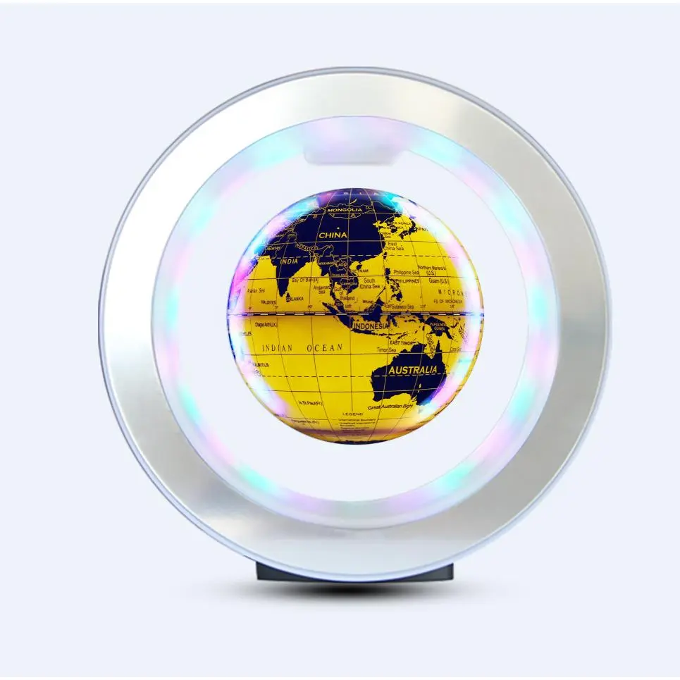 Floating Maglev Globe Glowing Tech Desk Ornament for Gift with LED Lighting and World Map Design
