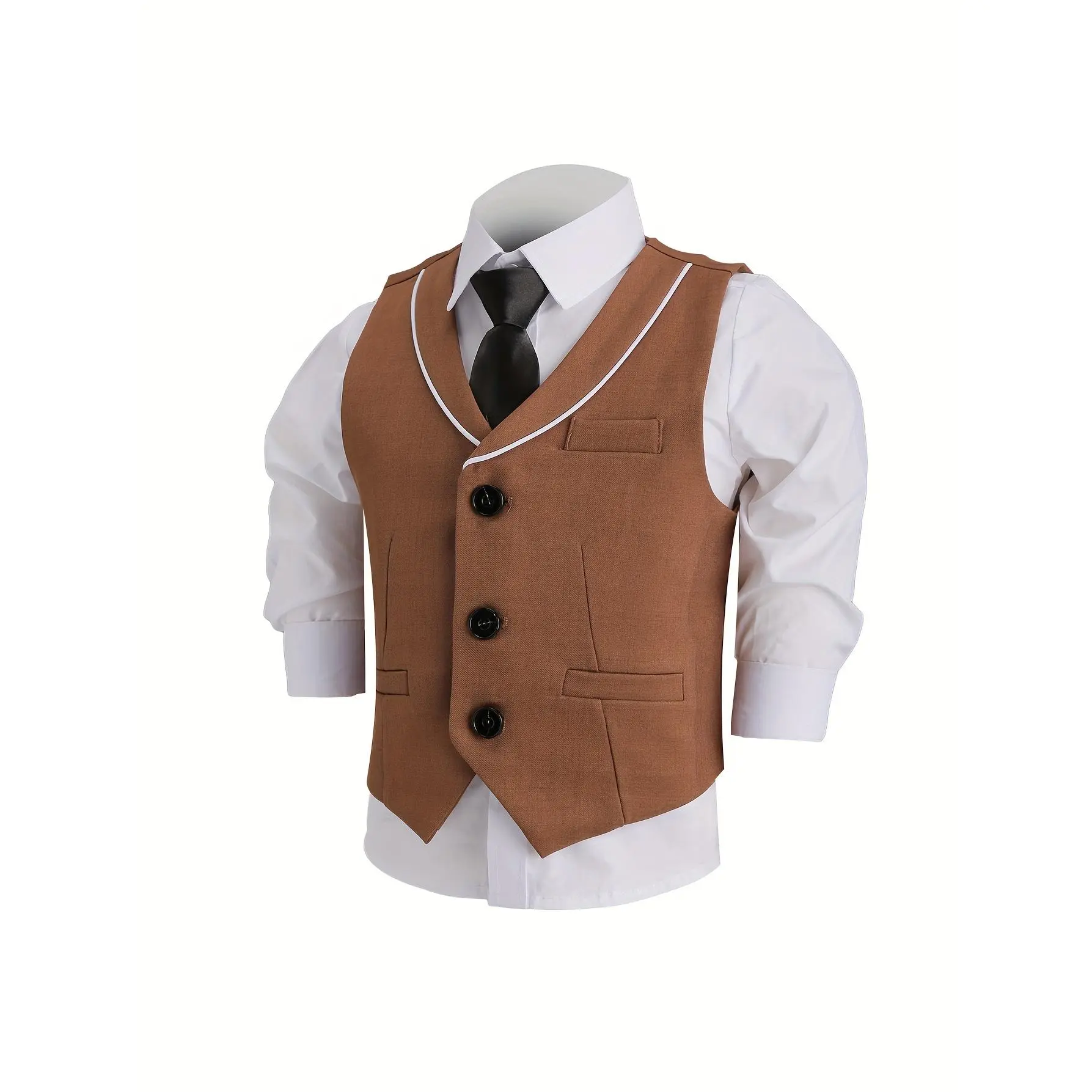New Summer Performance Clothes for Boys Violin Competition Grading Daily Casual Dress Suit Vest + Trousers + Tie Top Shirts Formal Fashion