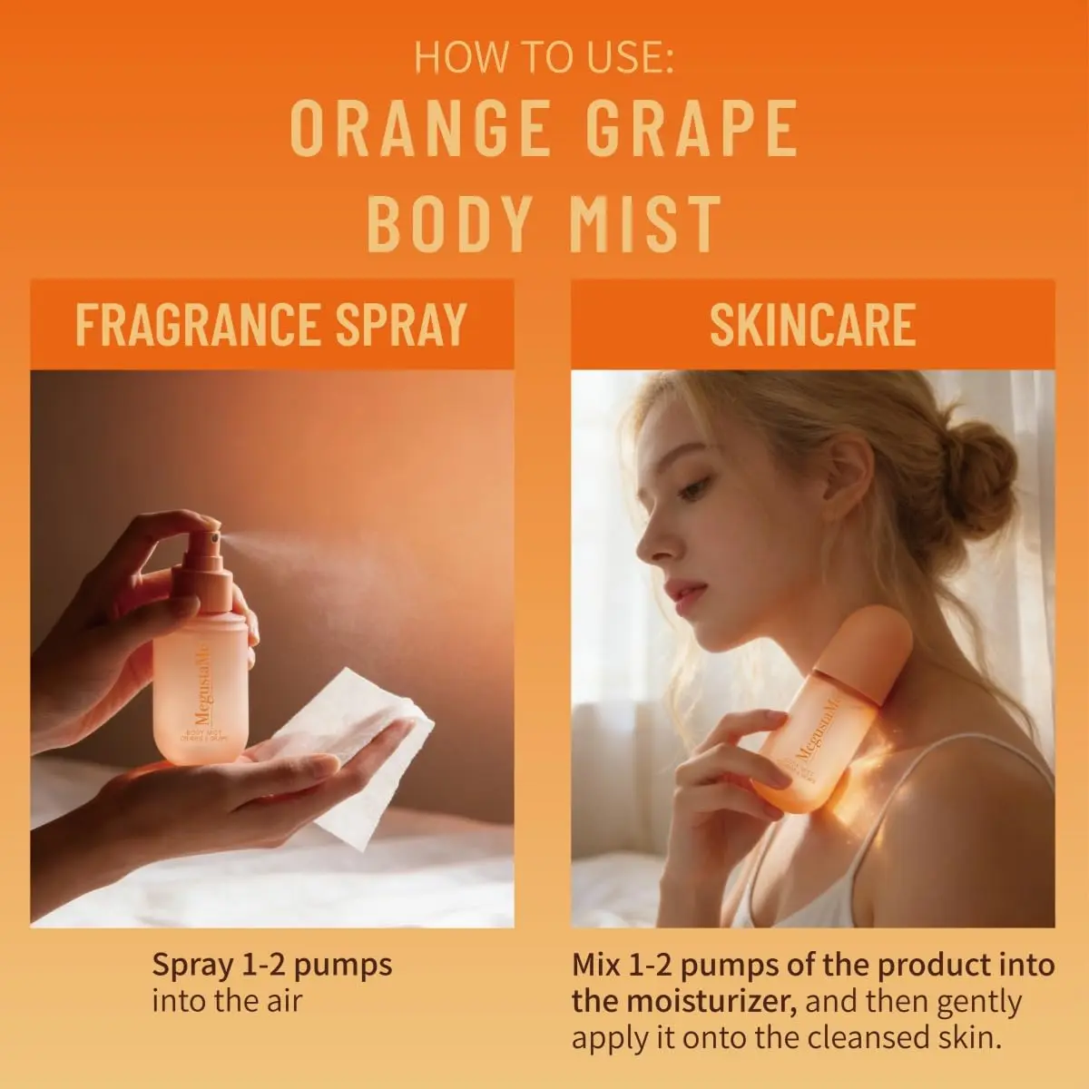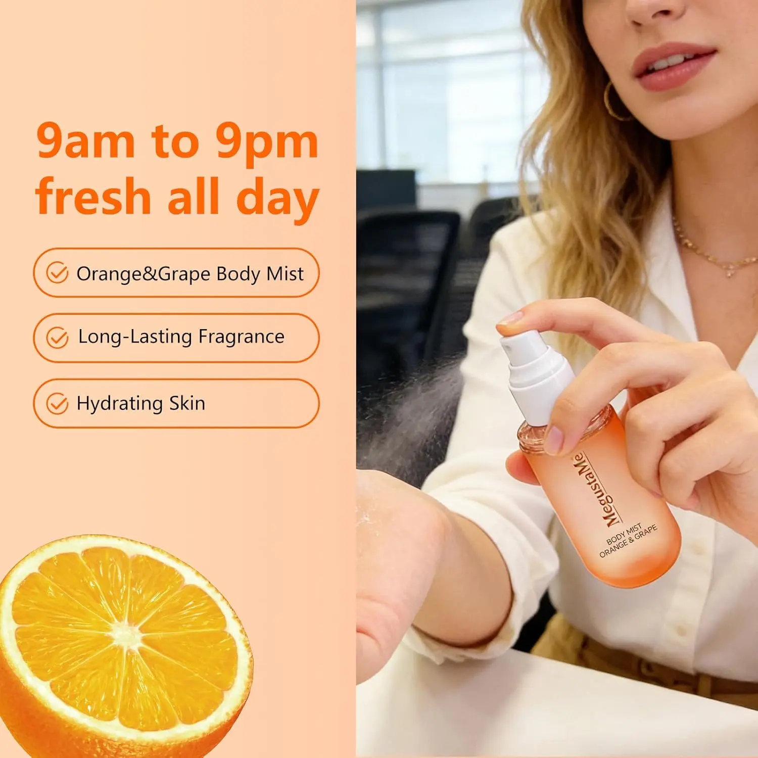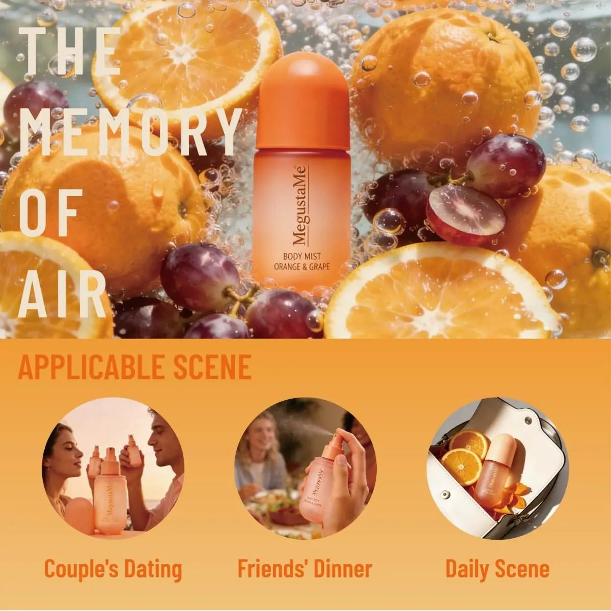Orange & Grape Body Spray for Women, Long Lasting Citrus Fruits Perfume Mist, Paraben Free Phthalate Free, Lightweight Non-Sticky Gentle Skin Safe Daily Fragrance, Travel Size 3.38 fl oz
