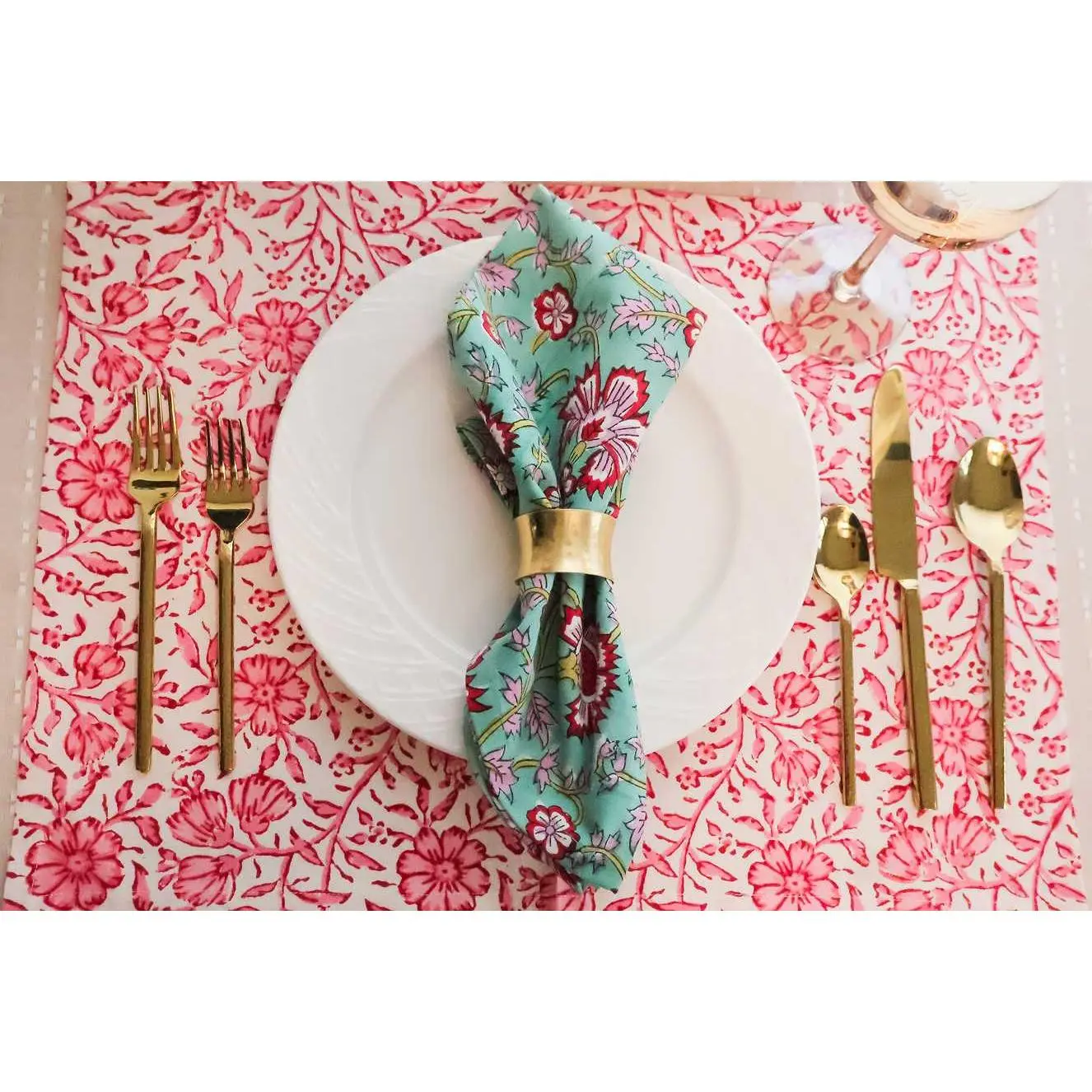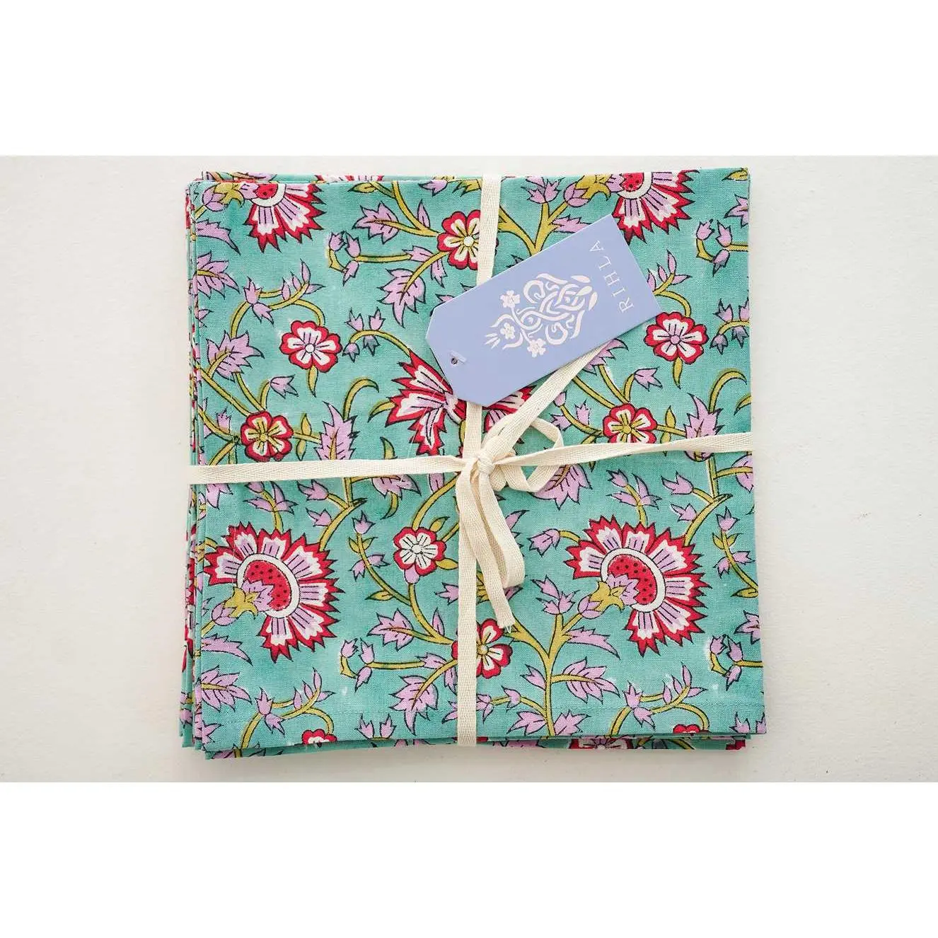 Fresh and lively, these napkins feature a minty sage base with red and lilac blooms. Handblock printed on cotton 40s, they strike the balance of festive and practical — ideal for family dinners or entertaining. Designed to pair beautifully with the Crimson Vine placemats.