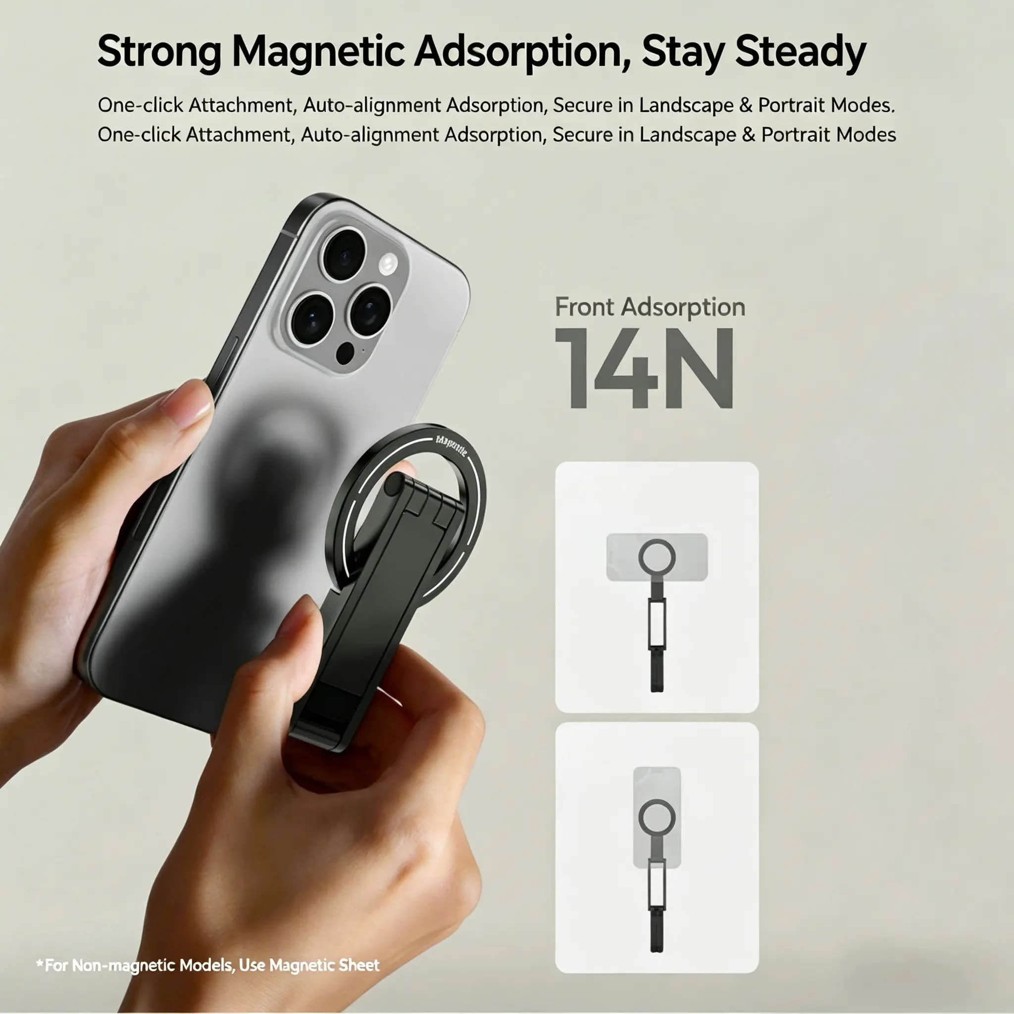 Magnetic Phone Tripod Stand for iPhone, Aluminum Maglock, Dual-Sided Magnets, Quick Installation, Compatible with Magsafe, Portable Photography Holder