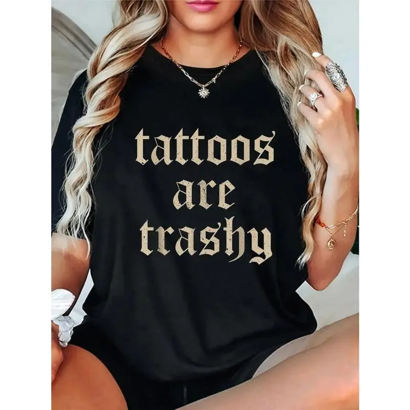 Tattoos Are Trashy Sarcasm Joke Tattoo Meme T-Shirt Plus SizeTattoos Are Trashy Sarcasm Joke Tattoo Meme T-Shirt Plus Size