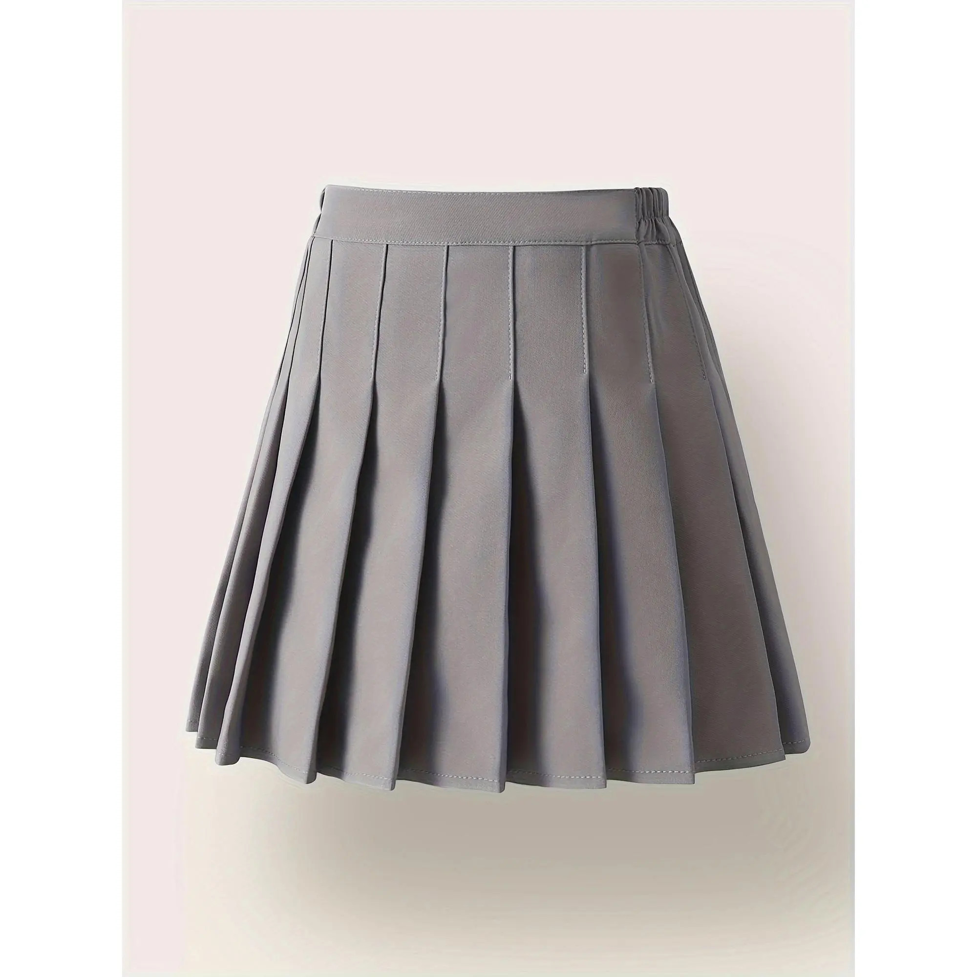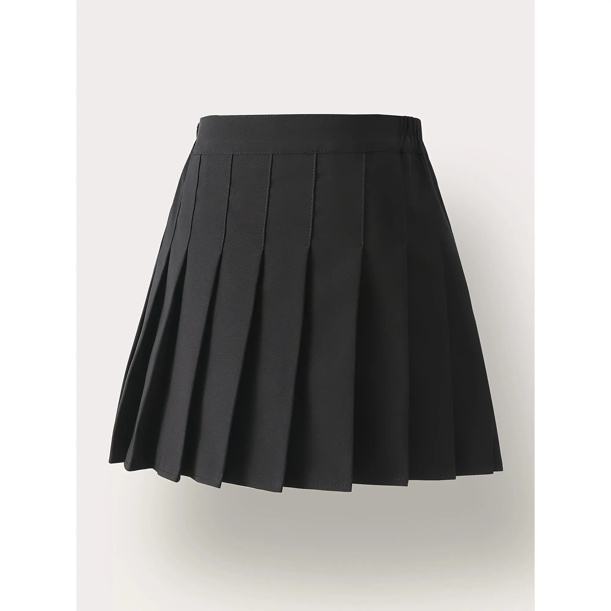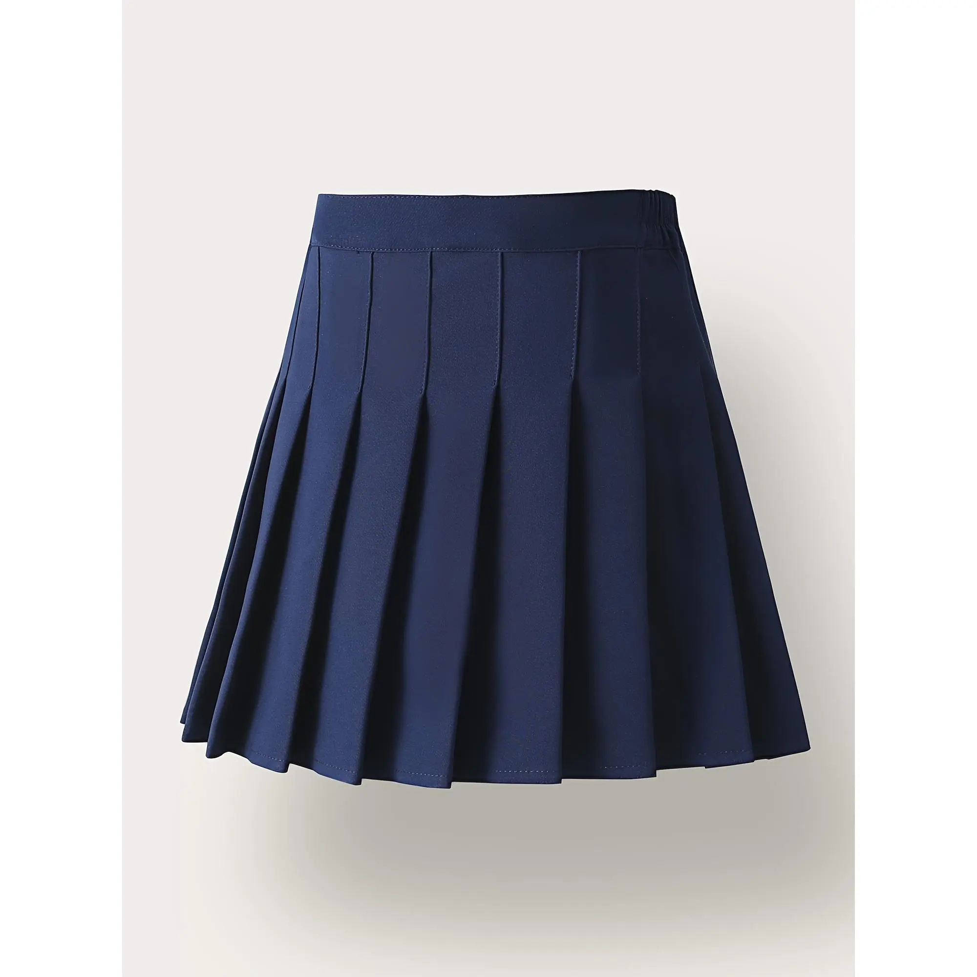 Girls' Pleated Skirt with Safety Shorts, Solid Color School Uniform Style