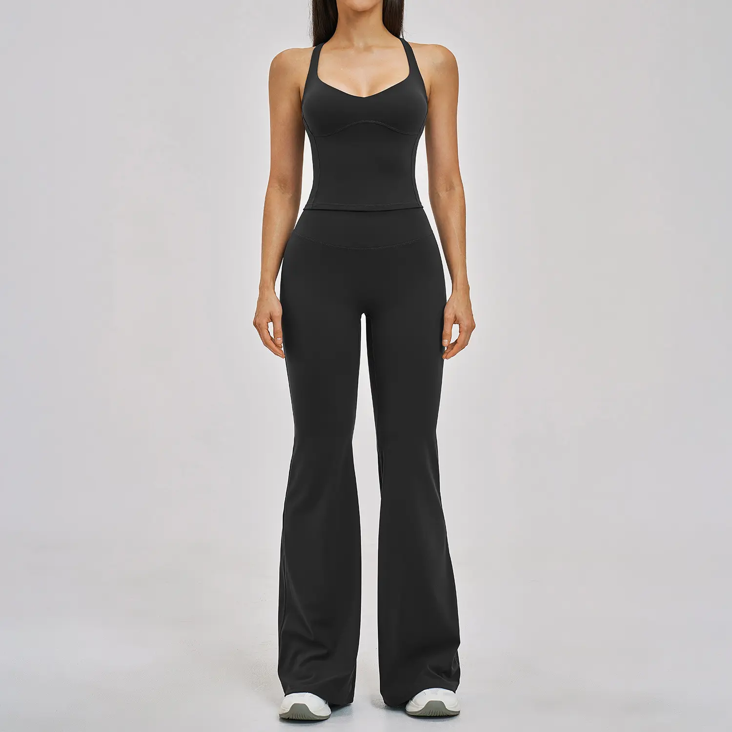 Women's seamless yoga & sports set with crisscross beauty back design, stylish and supportive.High-stretch, breathable, moisture-wicking fabric keeps you dry and comfortable during workouts.Built-in shock absorption for the chest, perfect for yoga, pilates, running, gym training and daily fitness.Slim fit, non-slip, no restriction, showing your body curve while ensuring full freedom of movement.Ideal activewear set for home exercise, outdoor sports and casual daily wear.