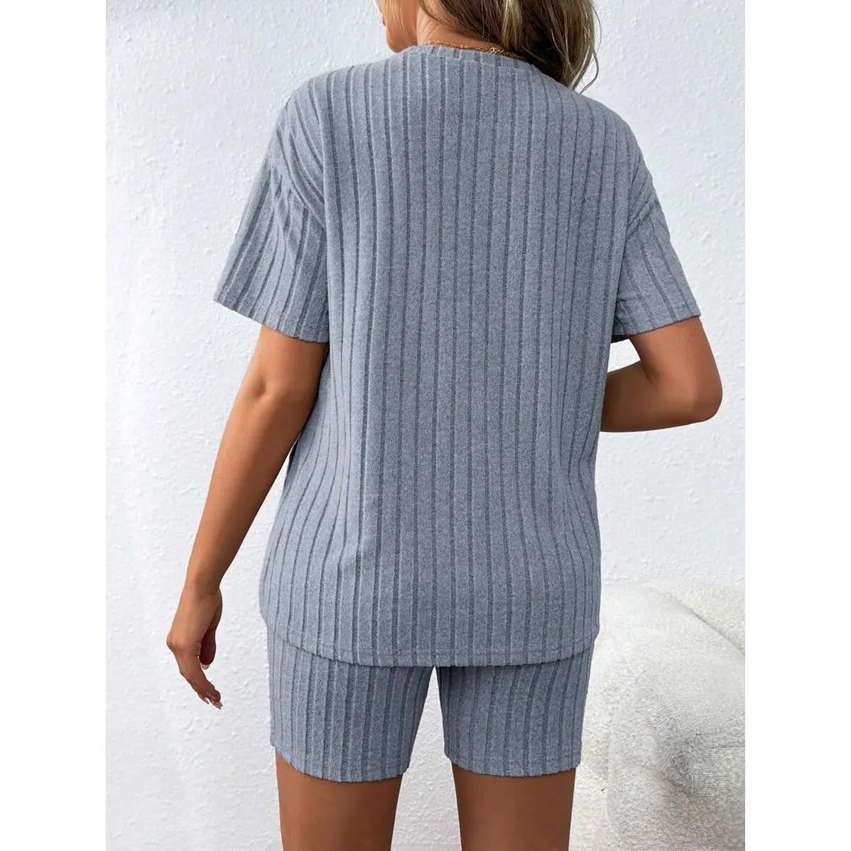 Neckline:Round Neck Sleeve Type:Drop Shoulder Details:Split, Rib-Knit Lined For Added Warmth:No Pattern Type:Plain Style:Casual Features:Feels Like Skin Pockets:Yes Tops Body:Unlined Color:Violet Purple Top Type:Tee Bottom Type:Biker Shorts Pants Length:Bermuda shorts Tops sleeve length: short sleeve Fit Type:Loose Tops Length:Long Tops Material:Knitted Fabric Care Instructions:Machine wash or professional dry clean Sheer:No Fabric:Slight Stretch Tops&Pants Composition:94% Polyester,6% Elastane