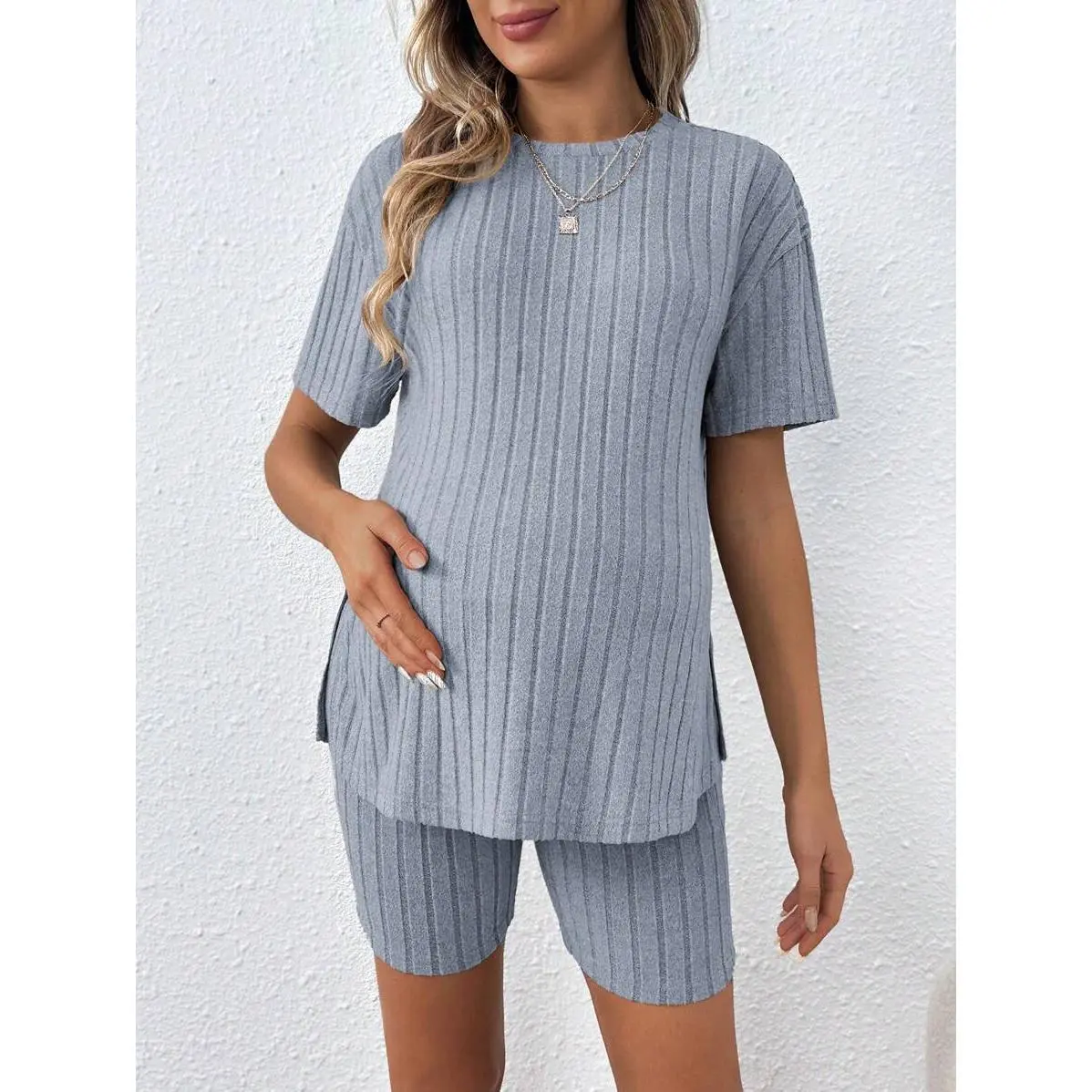 Women's Casual Loose Fit Round Neck T-Shirt With Adjustable Elastic Waist Shorts, Maternity Outfit