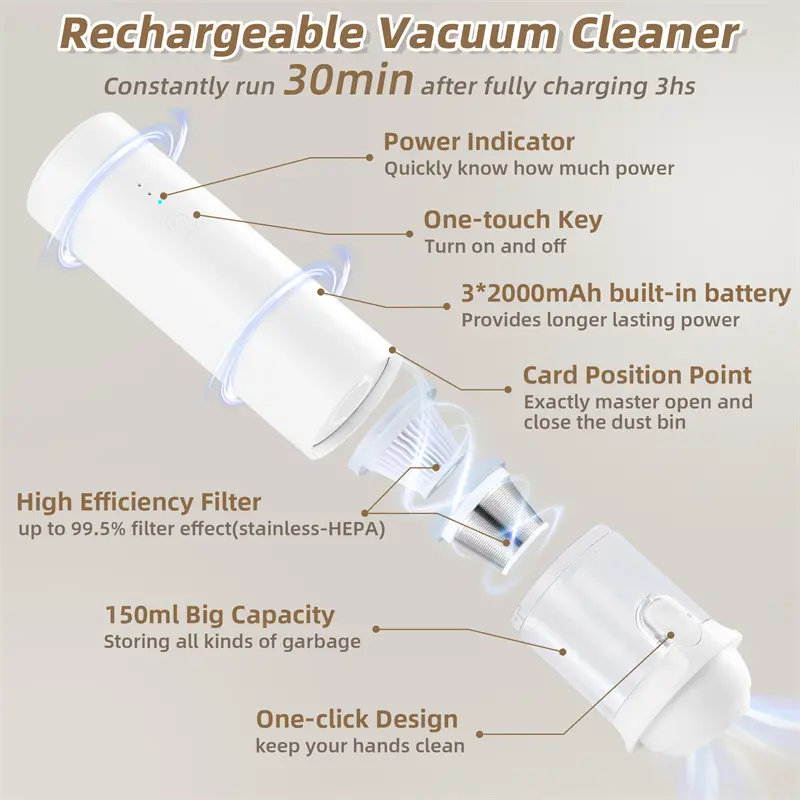 • Cordless & Portable – clean your car, desk, couch, anywhere