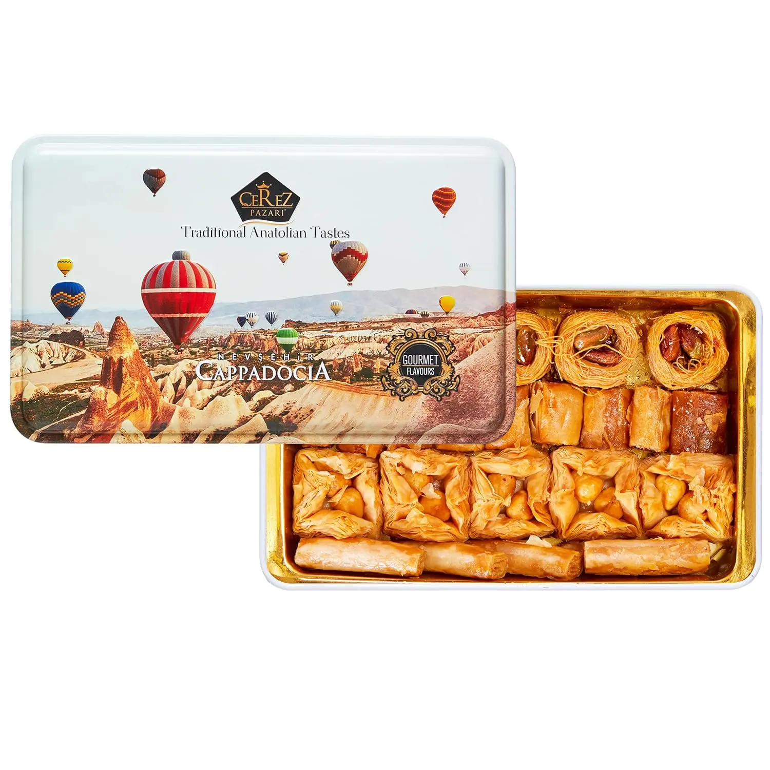 ·PURE AND NATURAL INGREDIENTS: As Cerez Pazari we dedicate our selves to introduce you traditional and purest baklava gift box freshly hand made in Istanbul, Turkey. You can feel the difference of quality as soon as you open the lid, smelling the great scent of nuts. Our baklava contains Wheat Flour (Gluten), Butter Ghee, Pistachio, Hazelnut, Cashew Sugar, Wheat Starch. No Preservatives, No Artificial Colors, No Artificial Flavors, Non GMO, No Glucose Syrup..