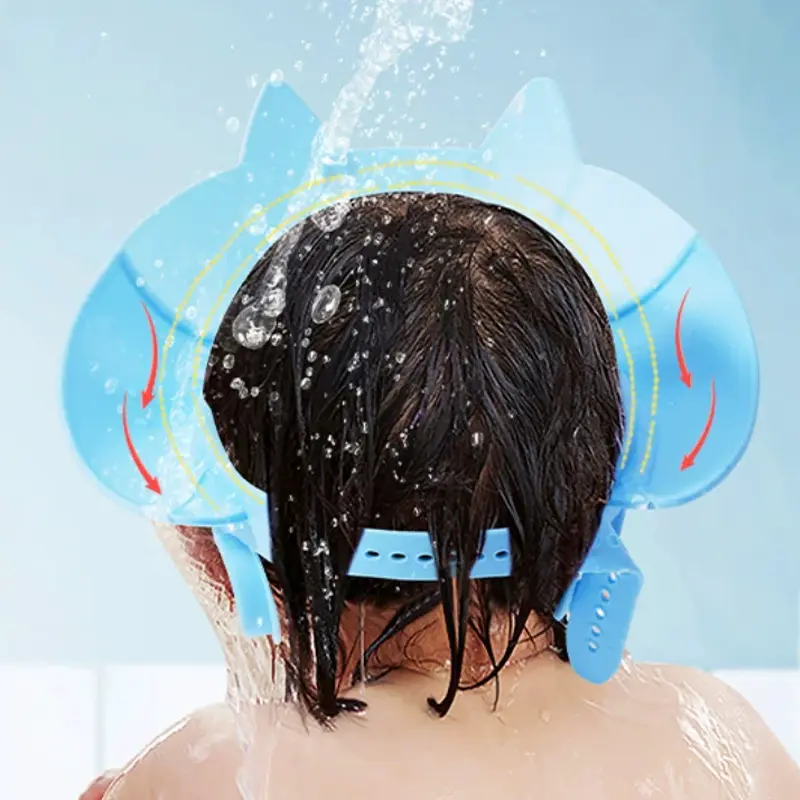Adjustable leak-proof baby shower cap, cute cartoon cat design - baby products, waterproof PP material, suitable infants and toddlers, 0+ months, pink/blue/yellow, newborn essentials, baby products clearance