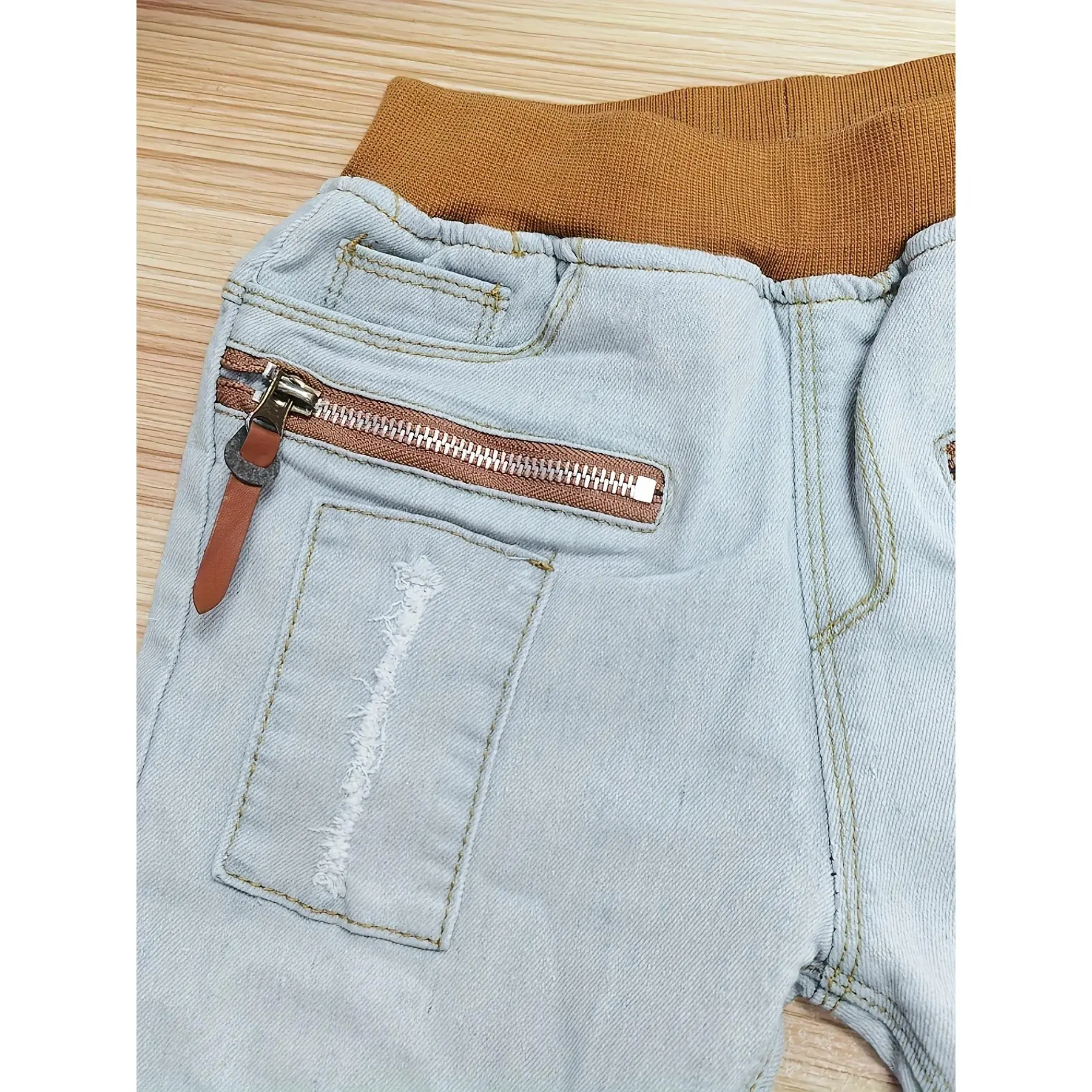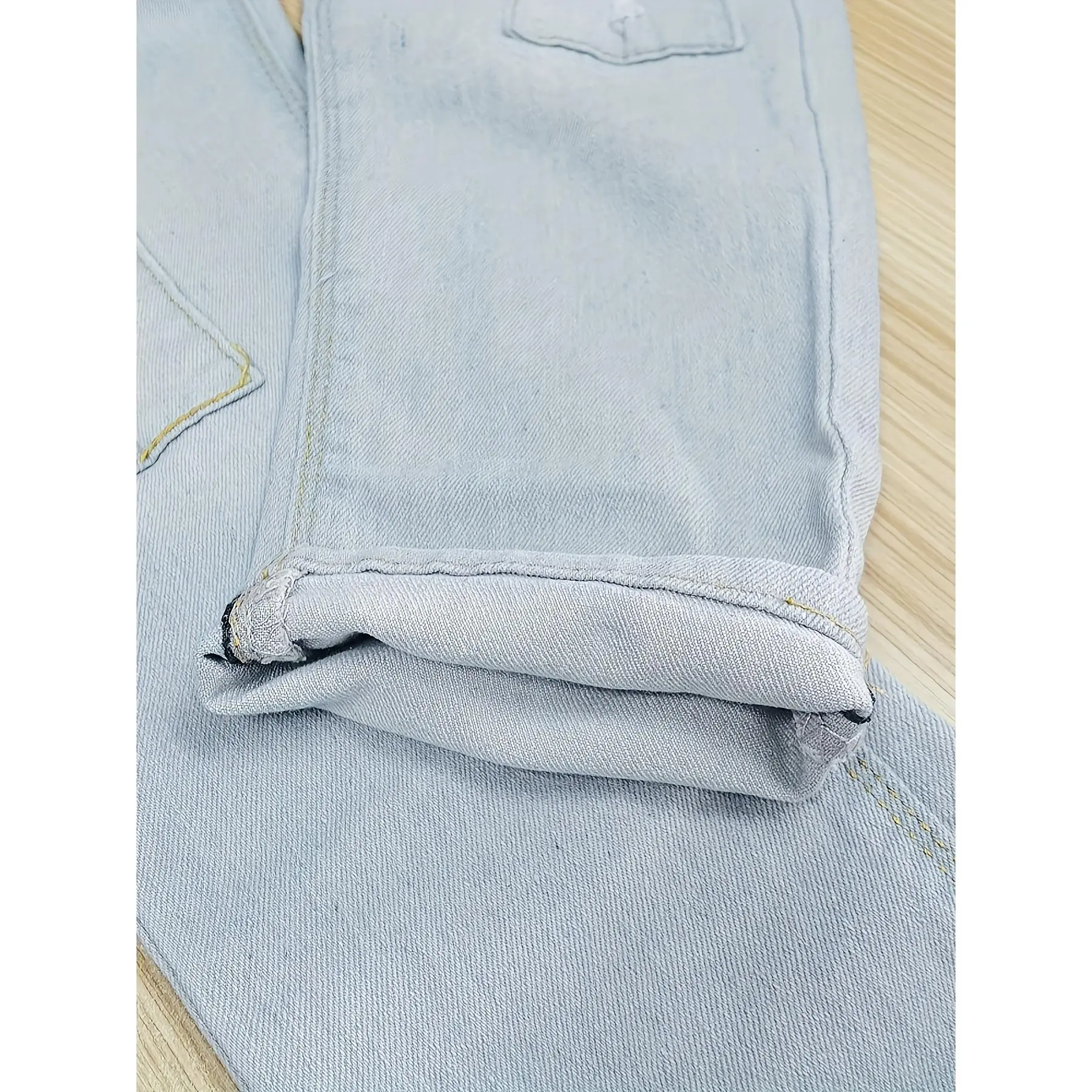Boys' Distressed Denim Jeans with Zipper Pockets, Light Blue Ripped Jeans for Toddlers & Kids, Comfortable Casual Pants for Daily Wear