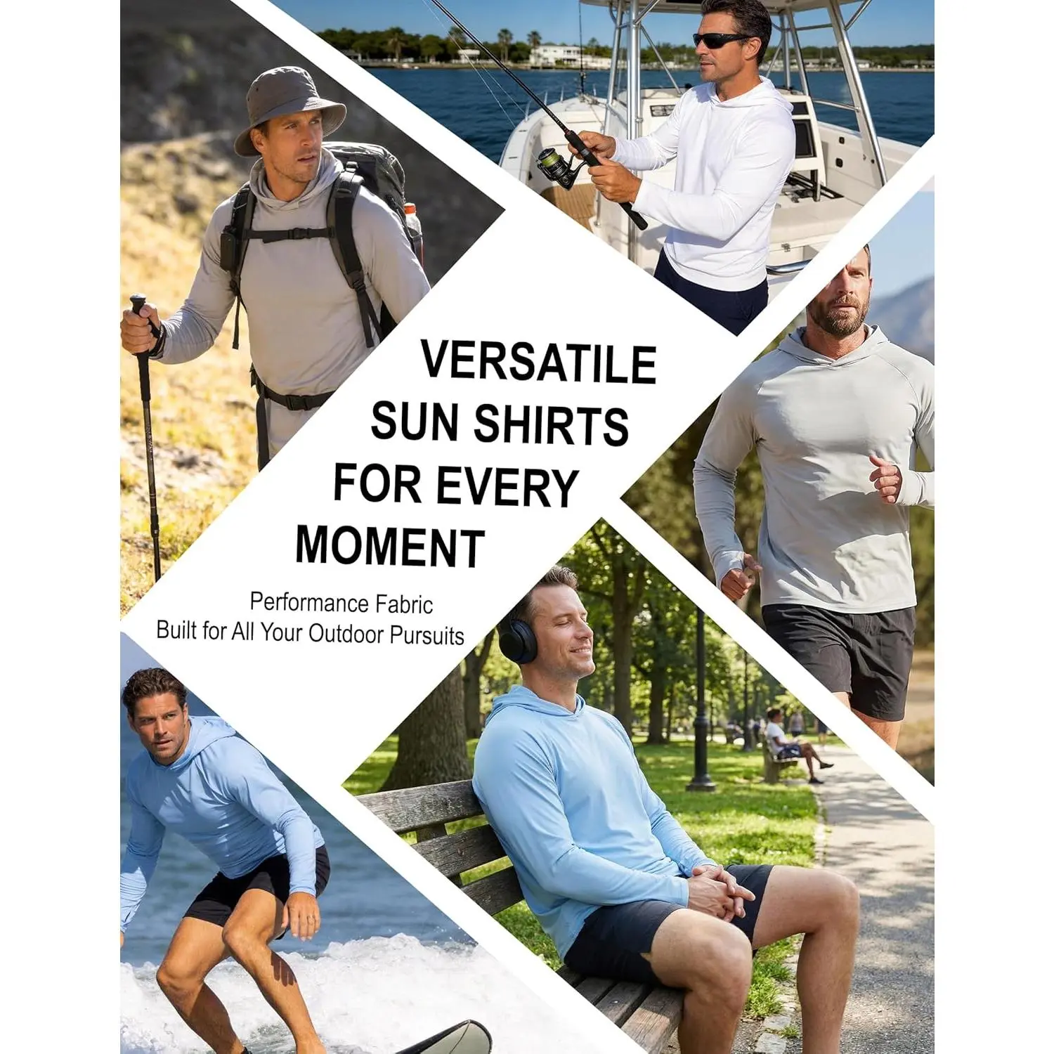 3 Pack Men's Fishing Shirts UPF 50+ Long Sleeve Sun Hoodie UV Protection Lightweight Rash Guard Swim Shirt