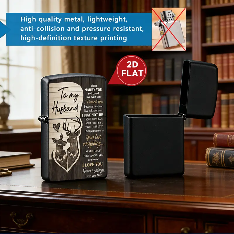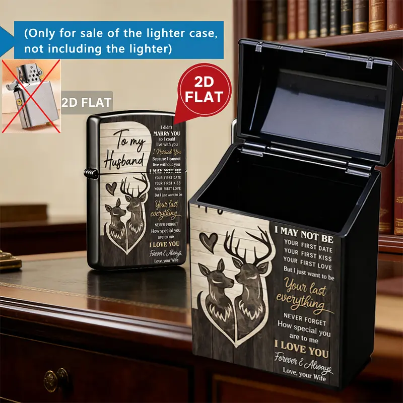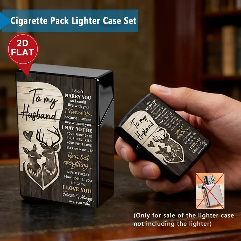 To My Husband Plastic Cigarette Case & Metal Lighter Shell Set, Deer Couple Love Letter Design, Romantic Wedding Anniversary Gift for Men from Wife