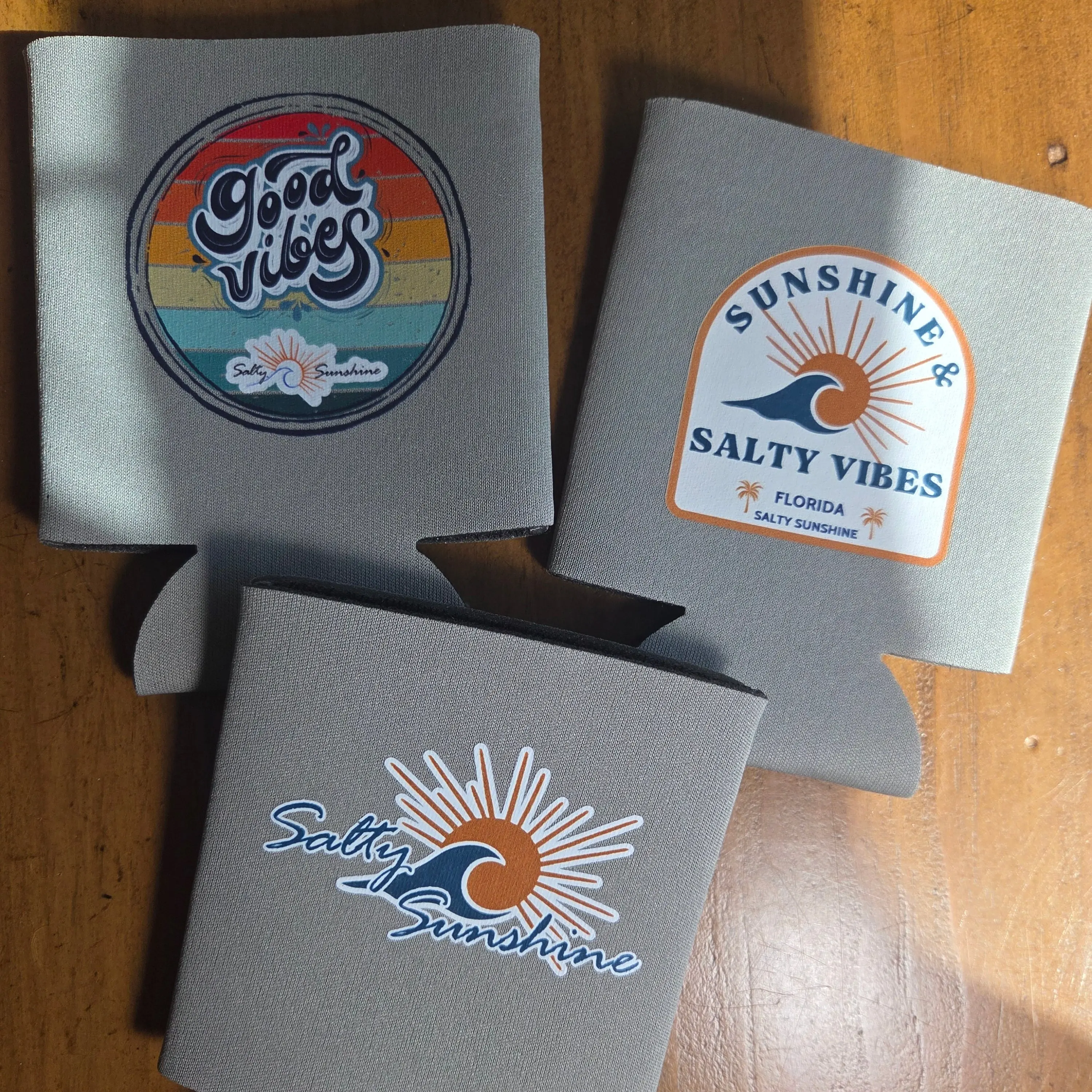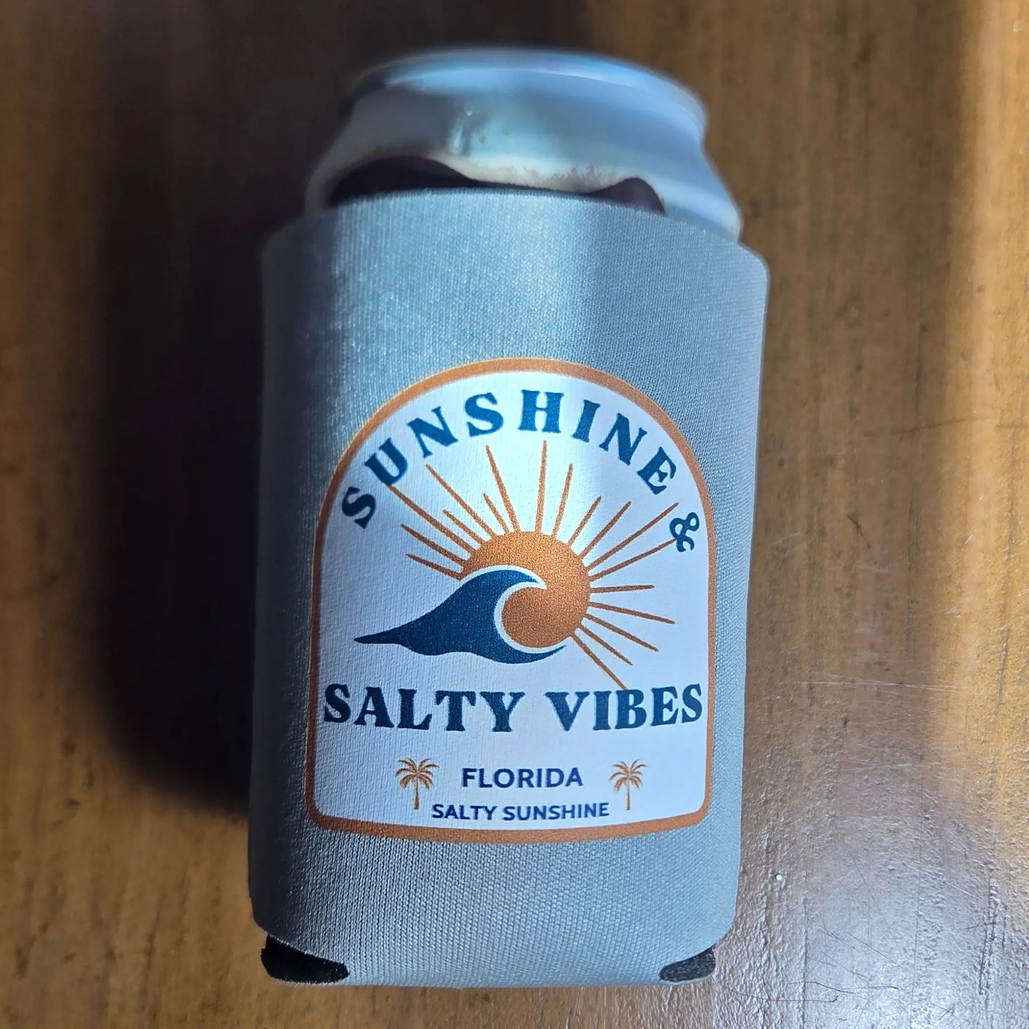 Keep your drink chilled and your vibes sunny with the Salty Sunshine can koozie!