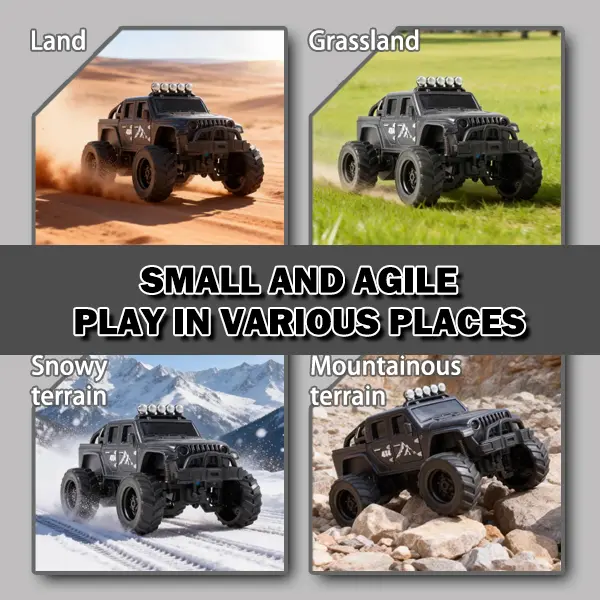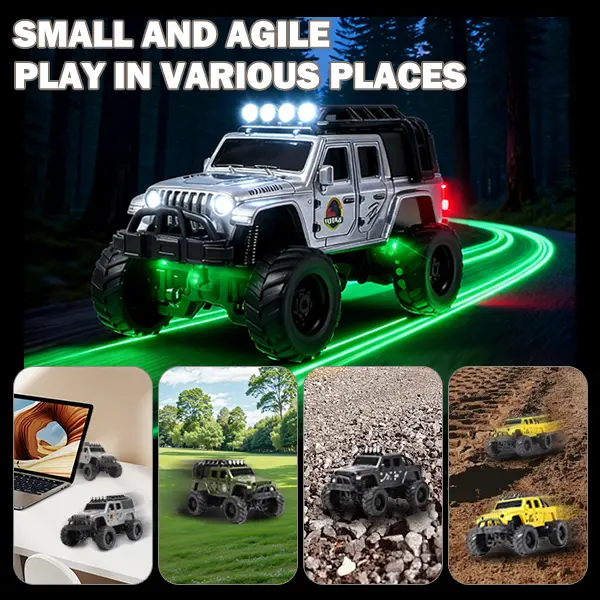 Equipped with realistic LED headlights and brake lights, this mini RC truck performs well even in low-light environments. Watch it shine while drifting, racing, or towing—bringing a more realistic driving experience.
