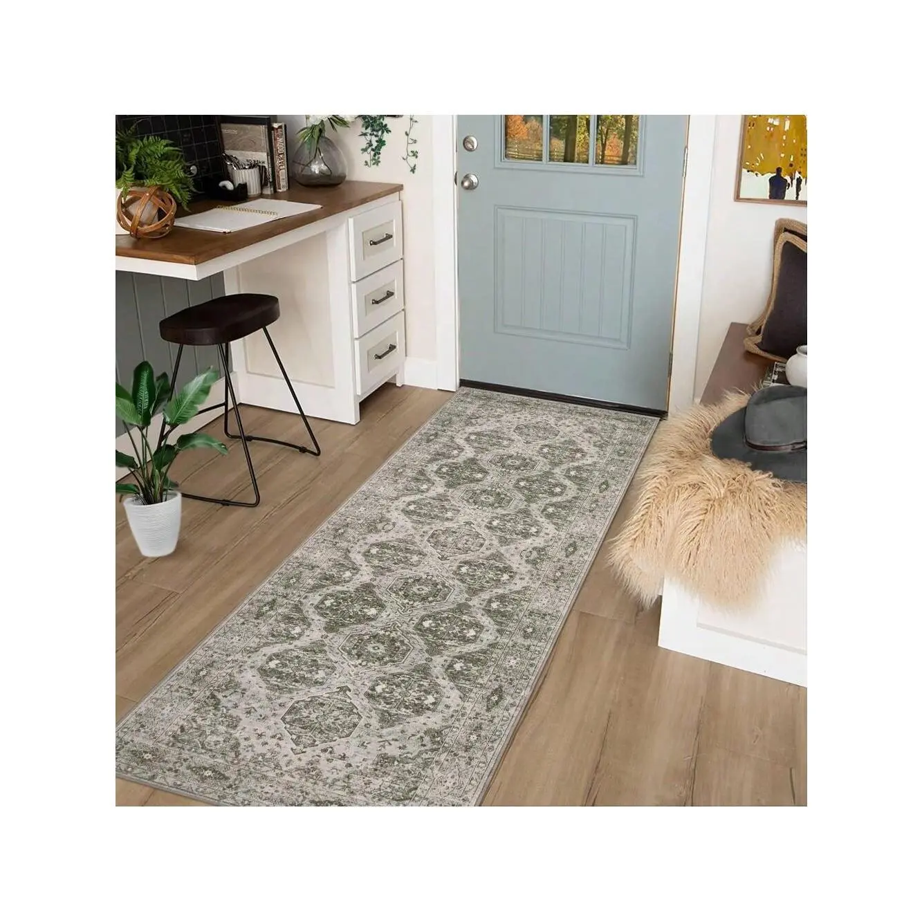 Anti-Slip Backing for Safety:Equipped with a non-slip rubberized base, it stays securely in place on hardwood, tile, or laminate floors, ensuring safety in high-traffic areas like hallways or dining rooms.