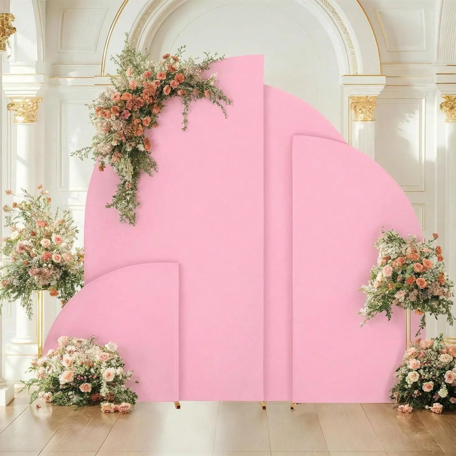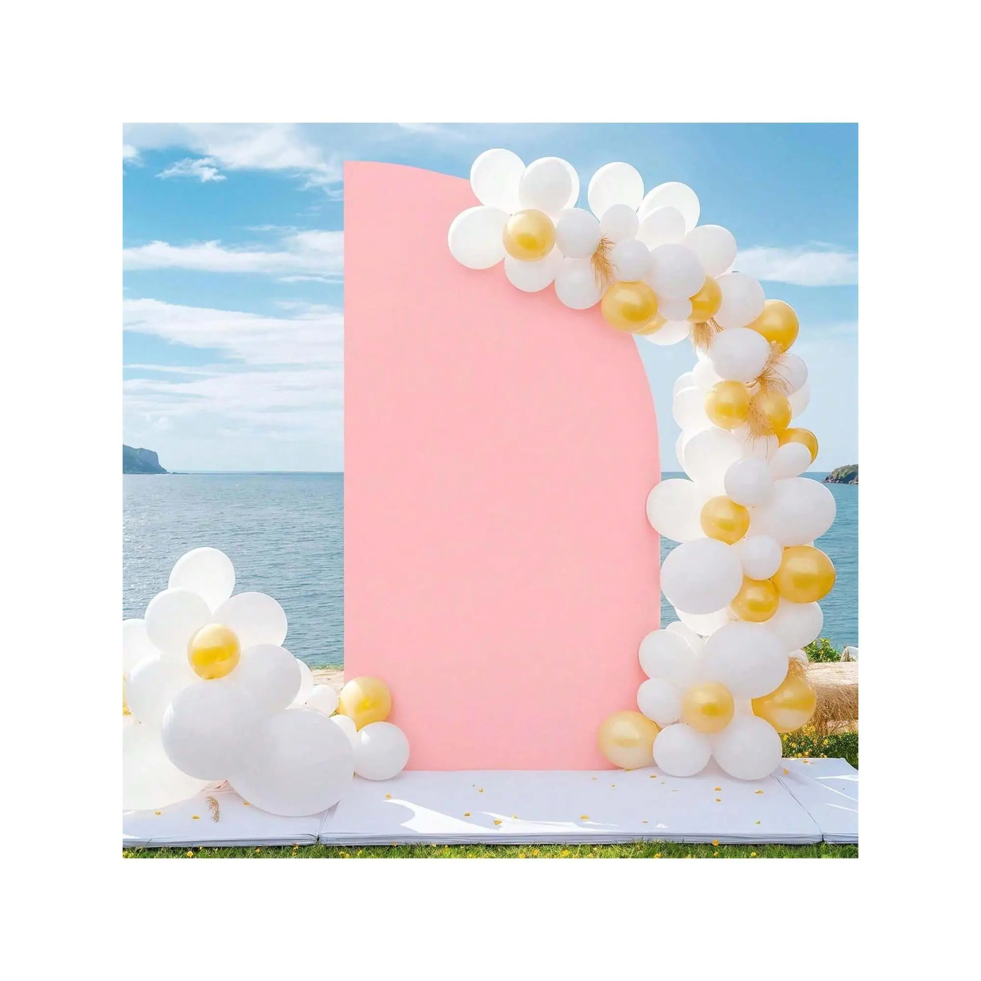 DOUBLE SIDED COVERING: Wedding half moon arch backdrop cover adopt double-sided design which perfectly showcases the backdrop decorations on both sides.Providing a pure and charming look for either direction,half moon arch backdrop cover is a perfect decorations for the party & wedding.
